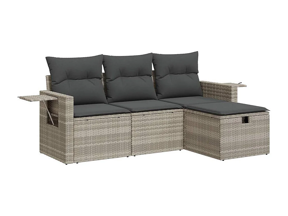 4-teiliges Gartenmöbelset mit hellgrauen Kissen aus gewebtem Harz