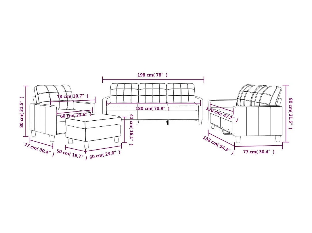 4-teiliges Sofaset mit Kissen in Cappuccino-Kunstleder
