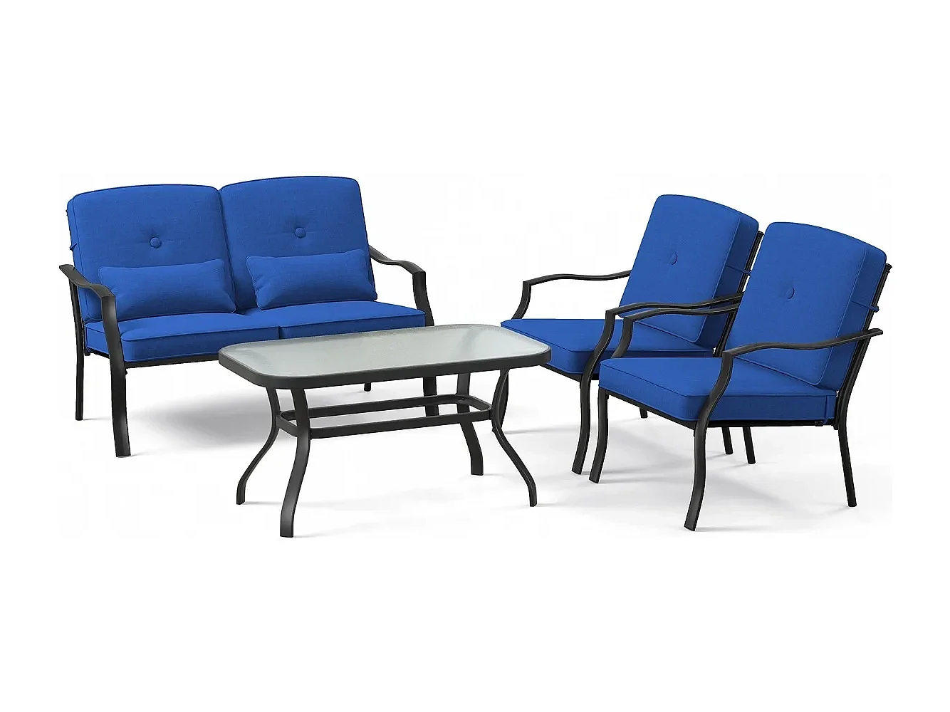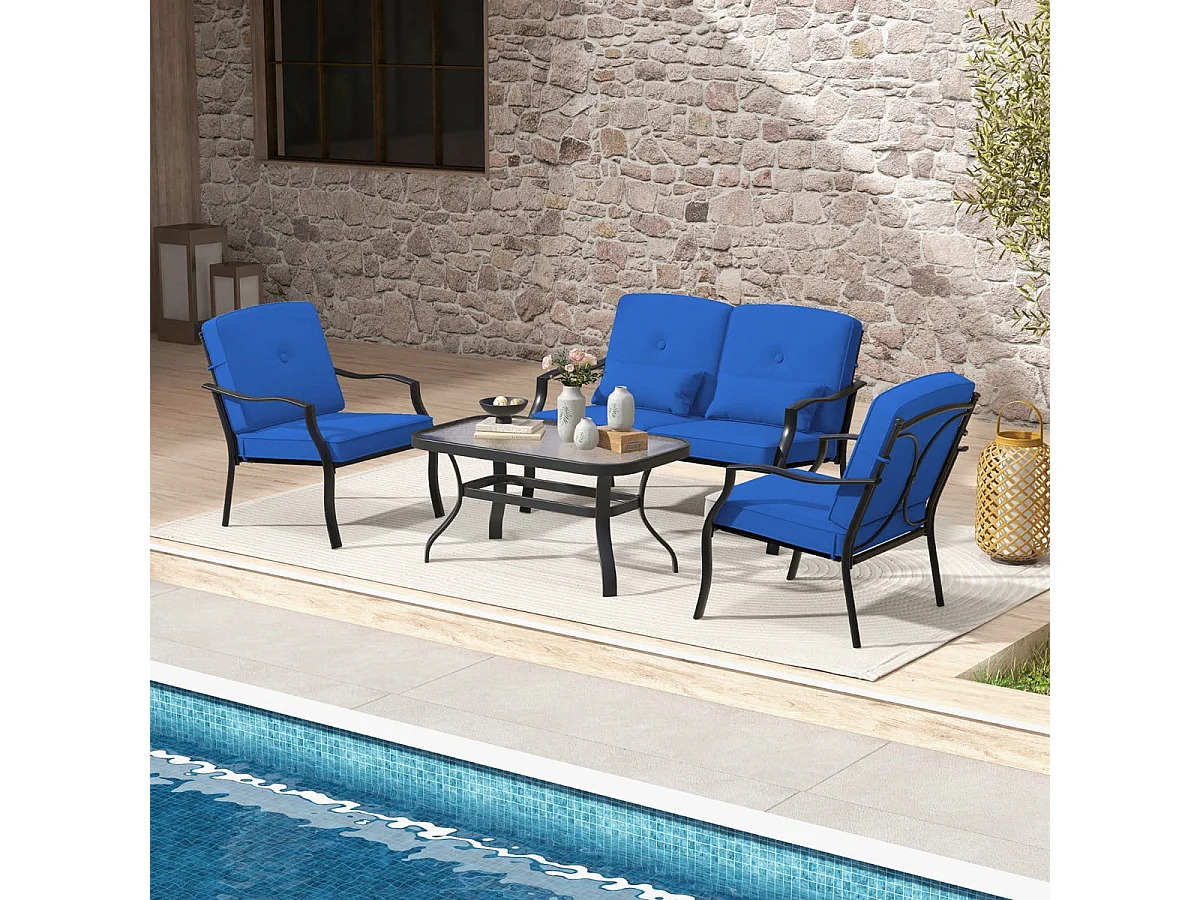 4-TLG. Gartenmöbel Set Terrassenmöbel mit Sitz- Rücken- & Taillenkissen Gartengarnitur