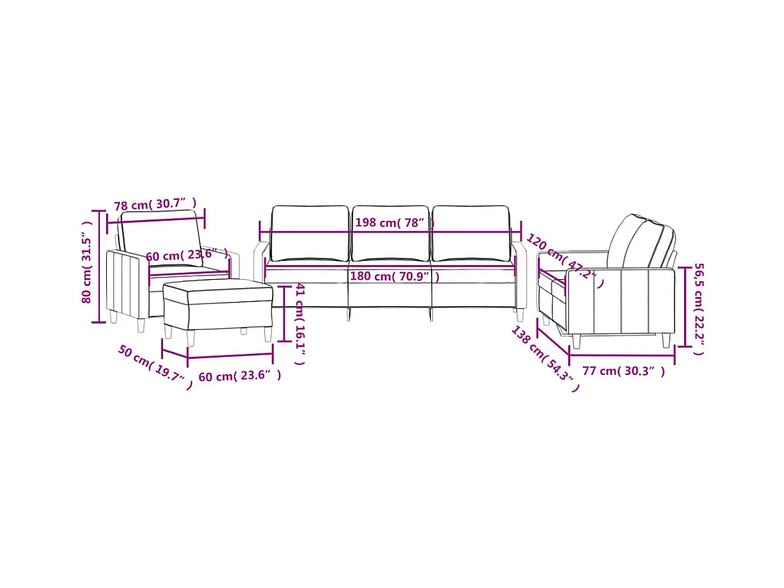 4-tlg. Sofagarnitur mit Kissen Weinrot Samt