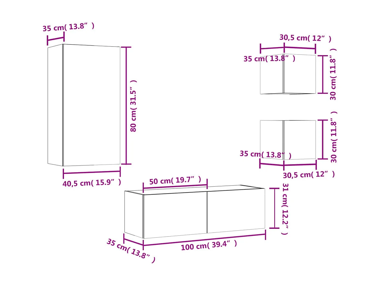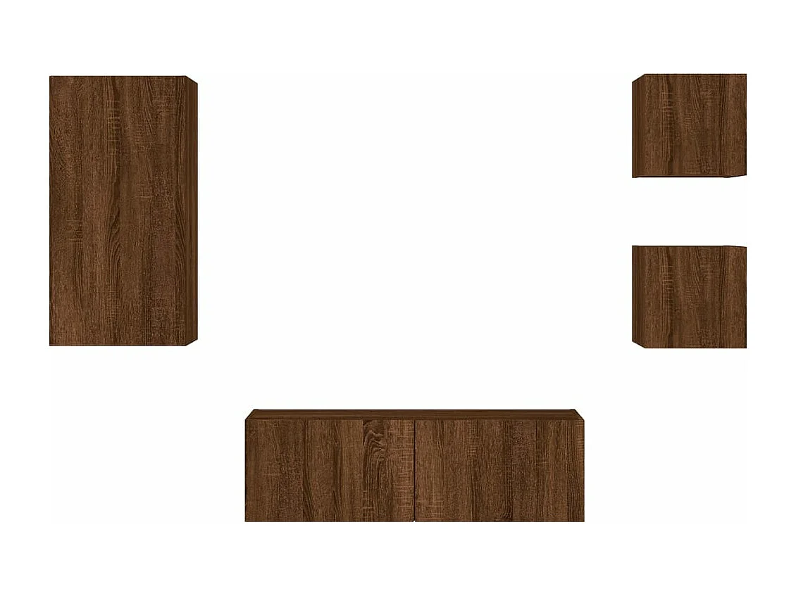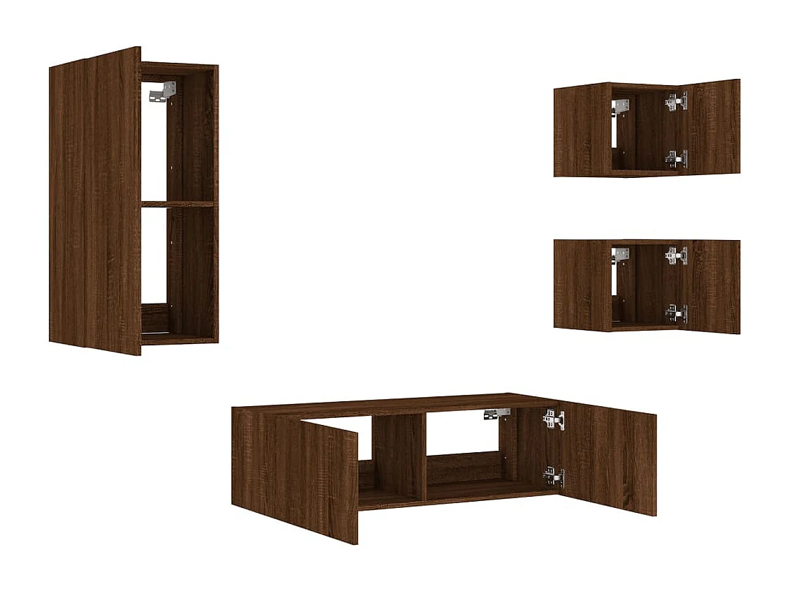 4-tlg. TV-Wohnwand mit LED-Leuchten Braun Eichen-Optik