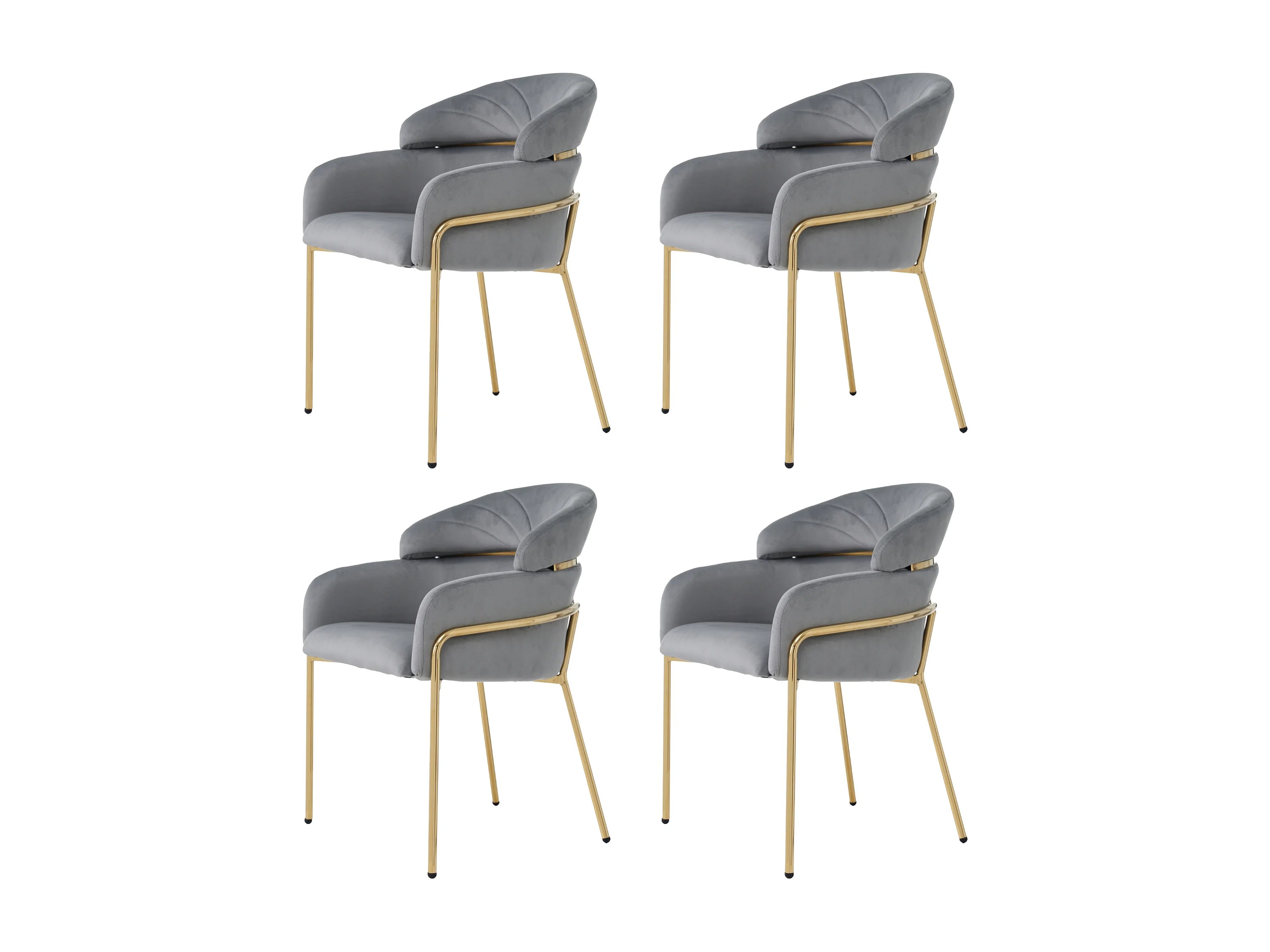 4er-Set Samtstühle - 79 x 45 x 53 cm - für Wohnzimmer und Schlafzimmer - vier Metallbeine - grau