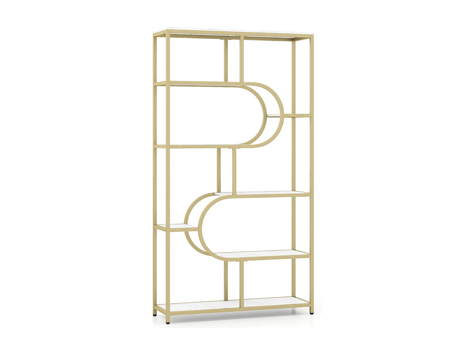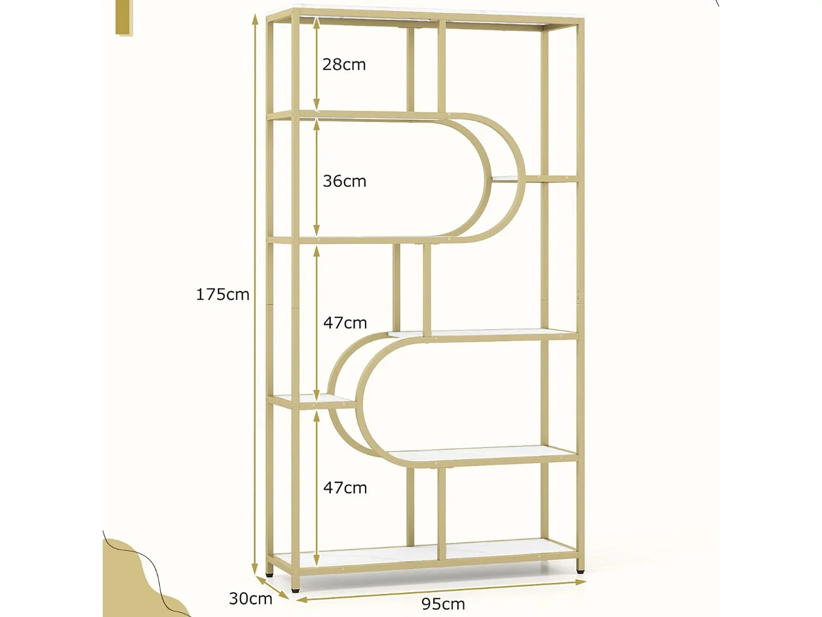 5-stöckiges Bücherregal mit Offenen Regalen Standregal Display Regal Weiß & Gold