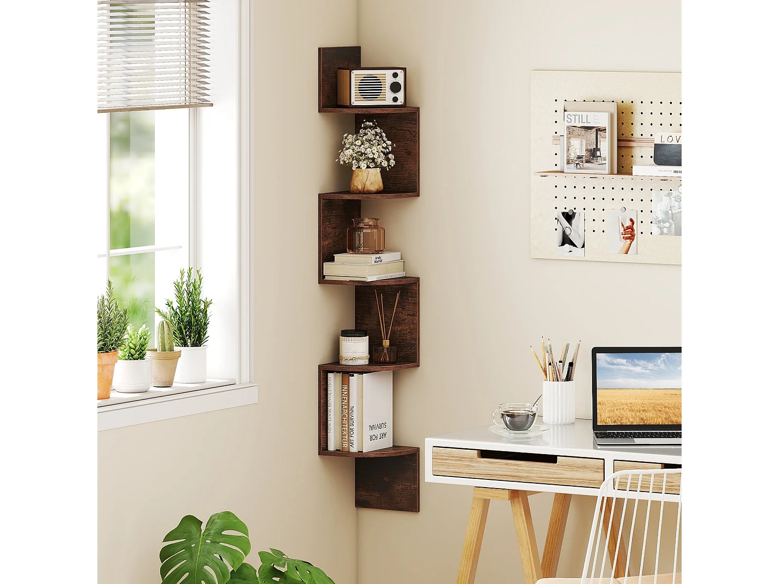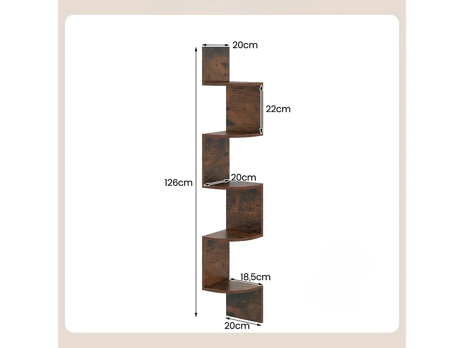 5-stöckiges Hängendes Eckregal Schwebendes Bücherregal Wandmontiertes Schweberegal