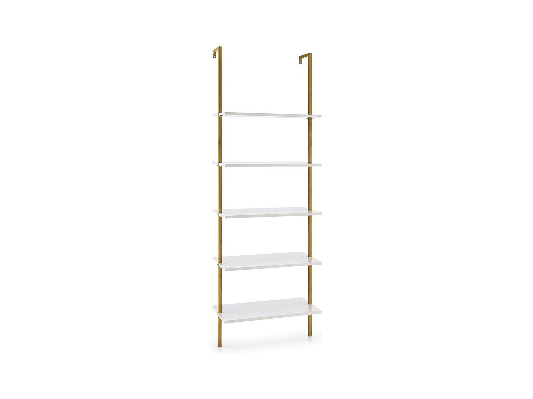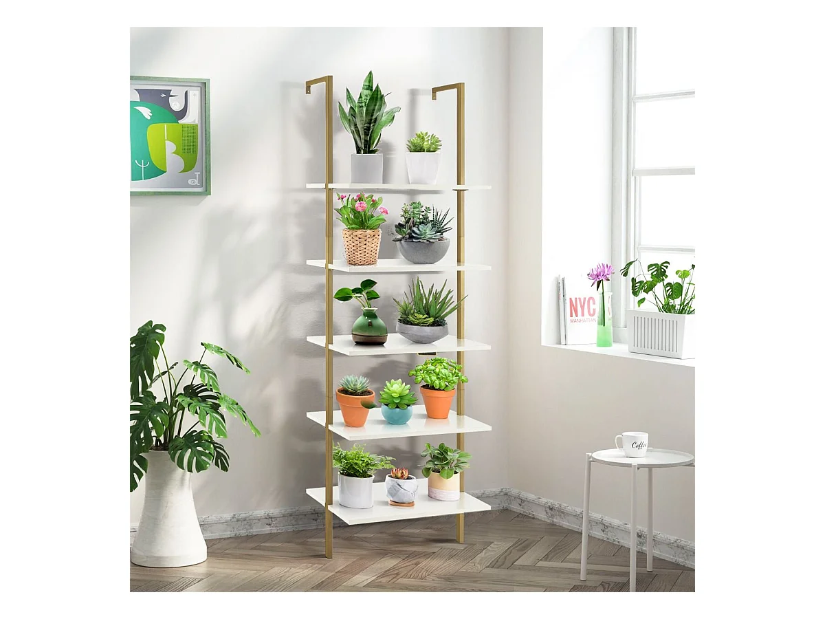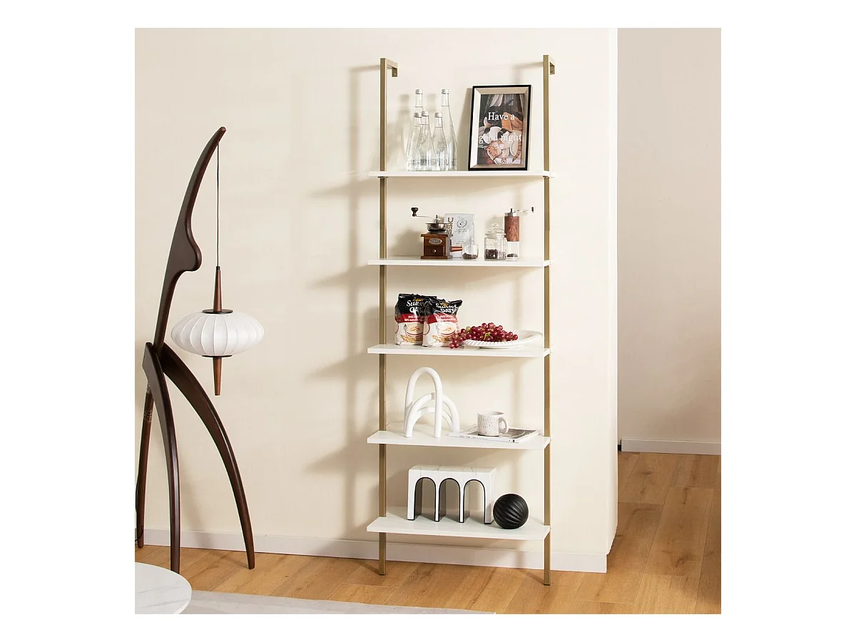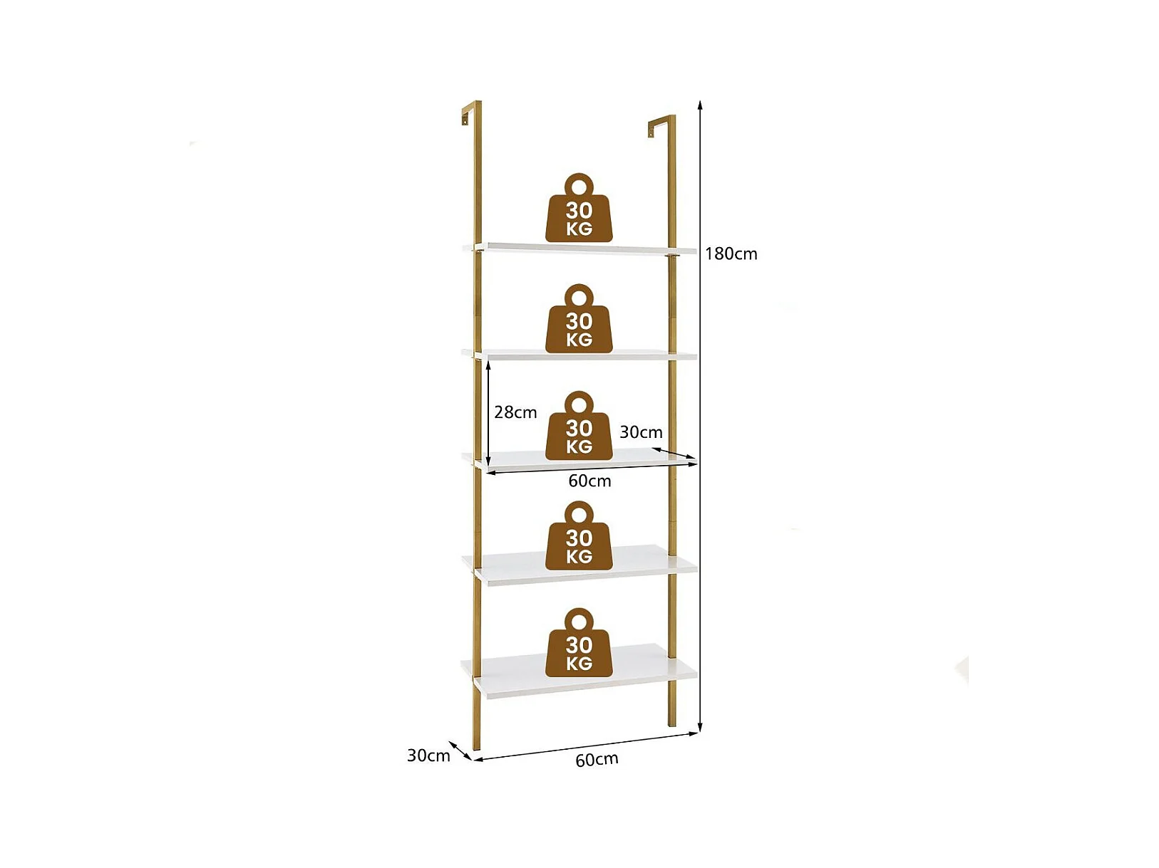 5-Stöckiges Leiterregal Wandregal mit Stahlrahmen 60 x 30 x 180 cm Weiß & Gold