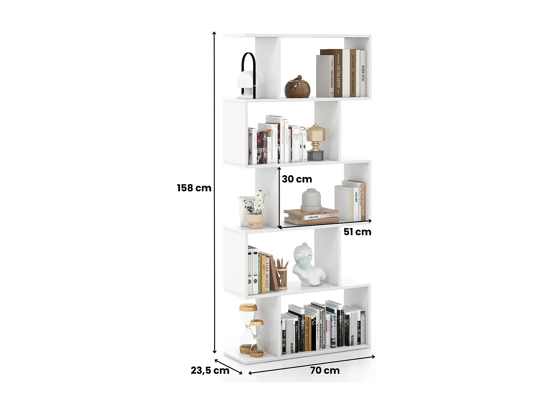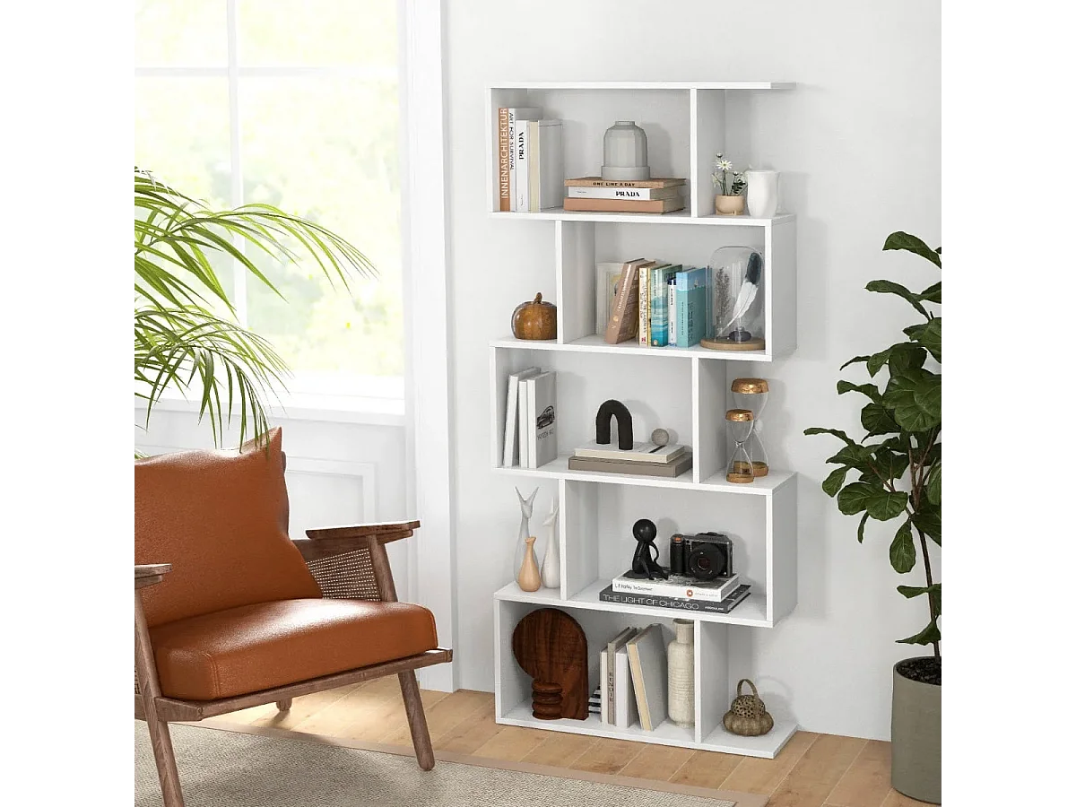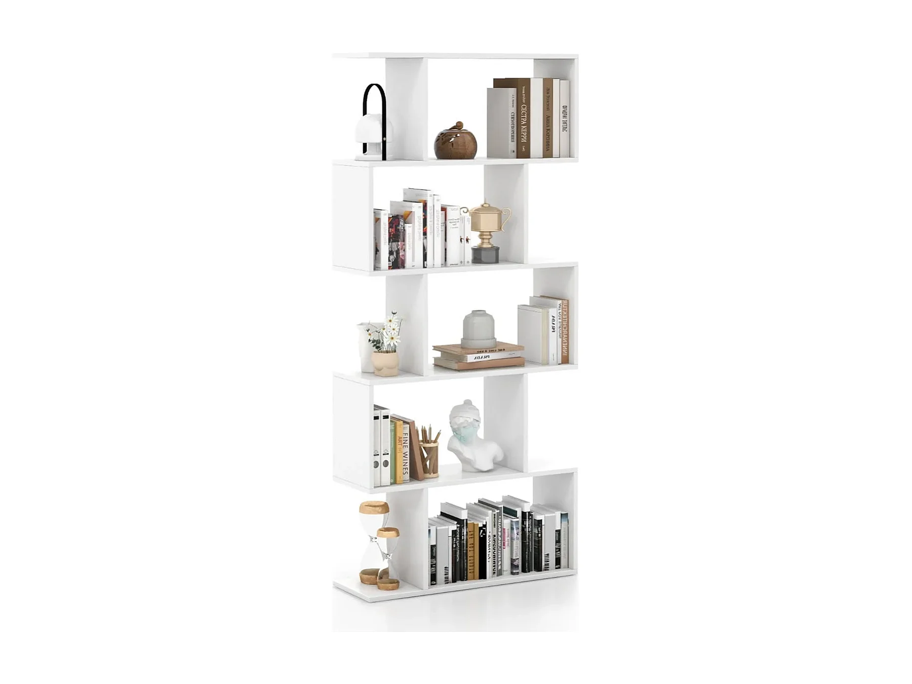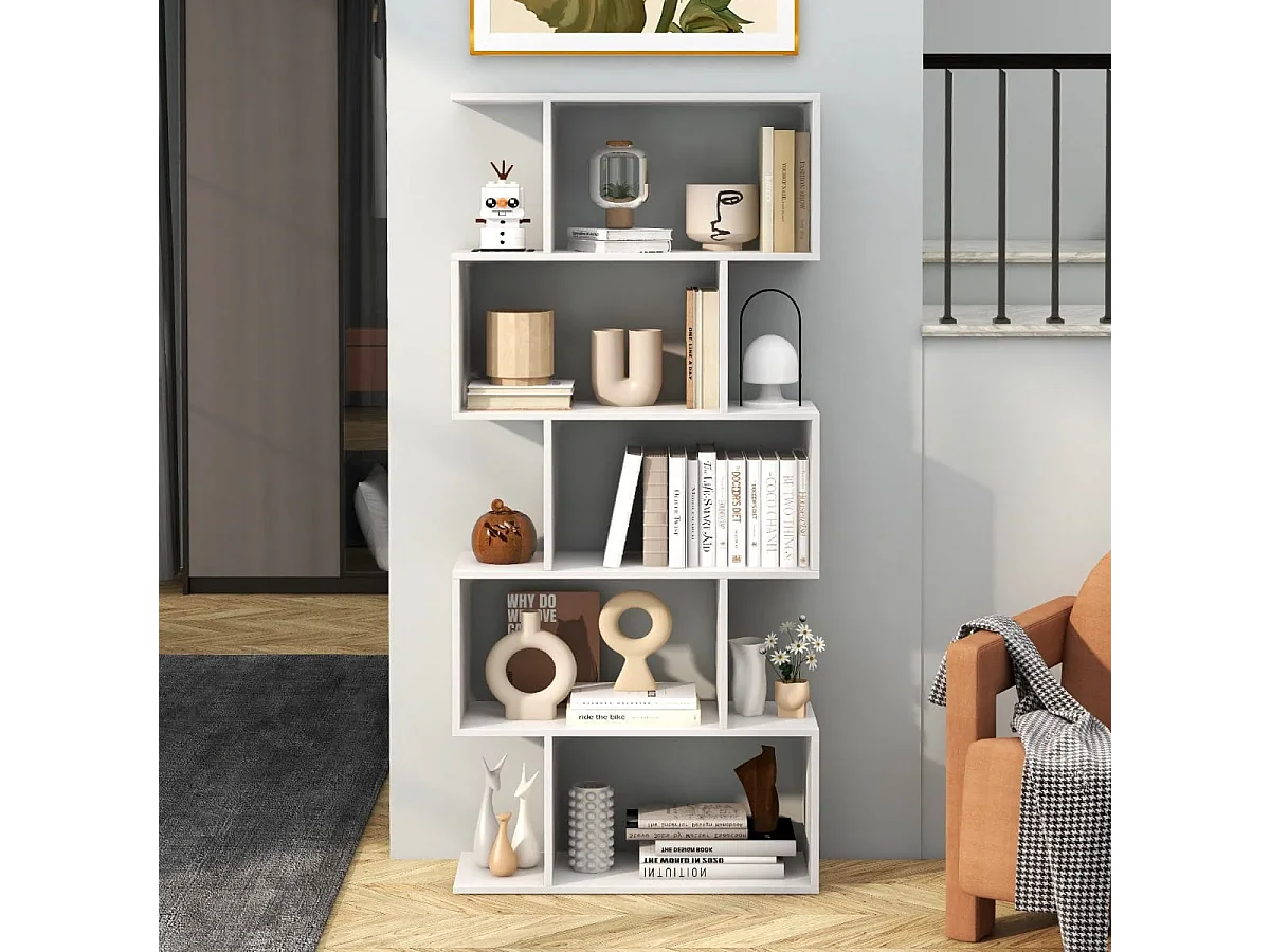 5-stufiges Bücherregal mit Kippschutz freistehender Raumteiler dekoratives Ausstellungsregal Weiß