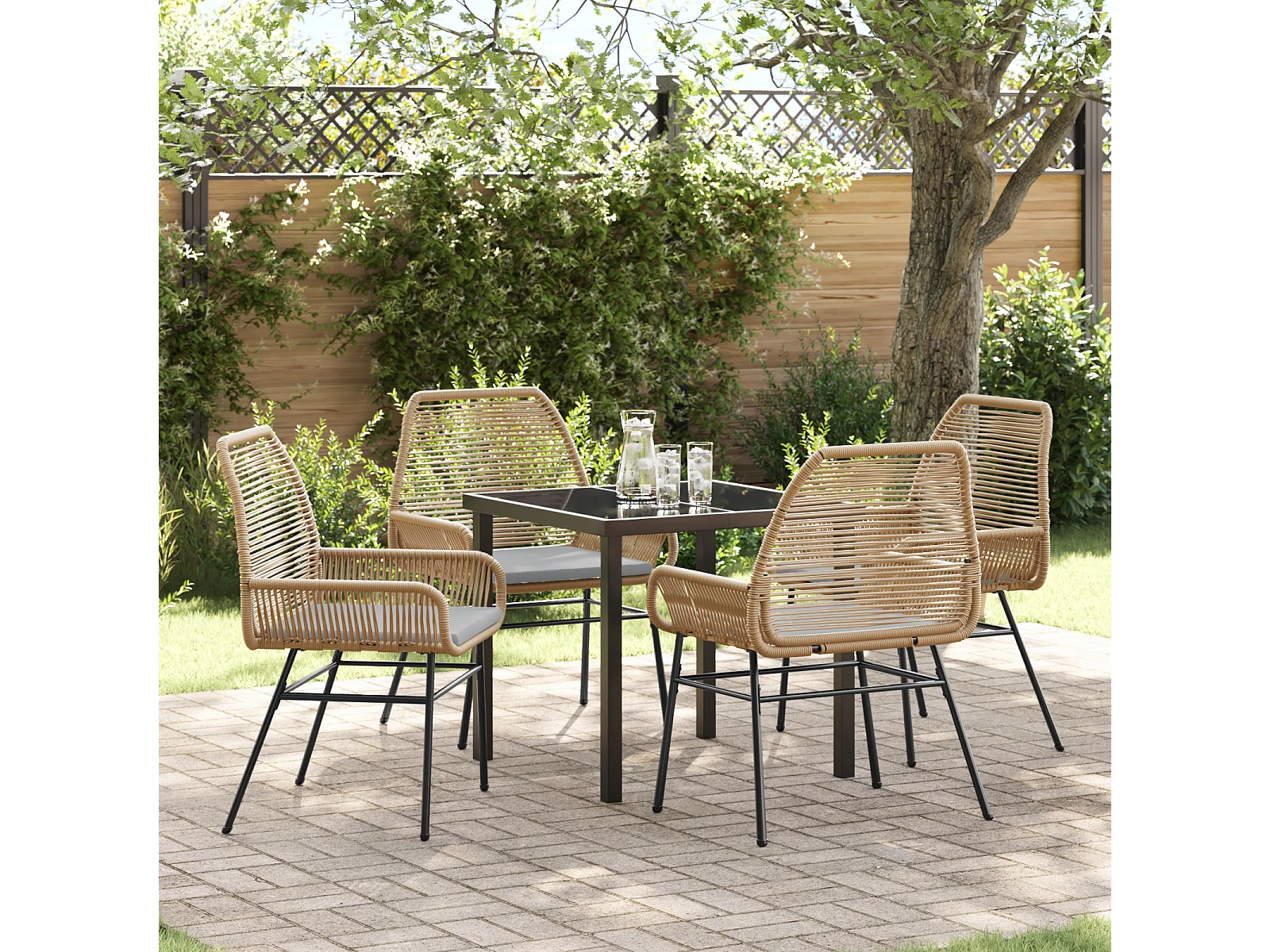 5-teiliges Garten-Essset aus braunem synthetischem Rattan