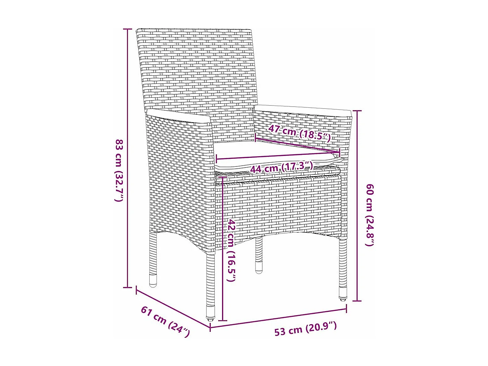 5-teiliges Garten-Ess-Set mit Kissen, schwarzes Rattan, Poly