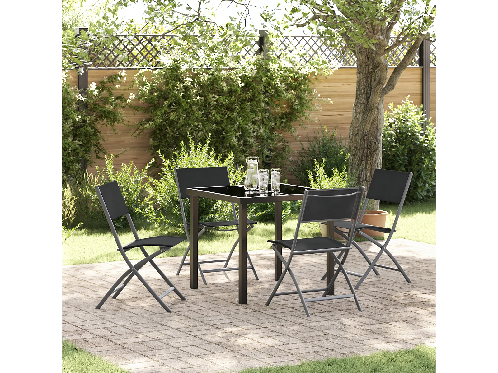 5-teiliges Garten-Essset – Schwarzes Textilene und Stahl