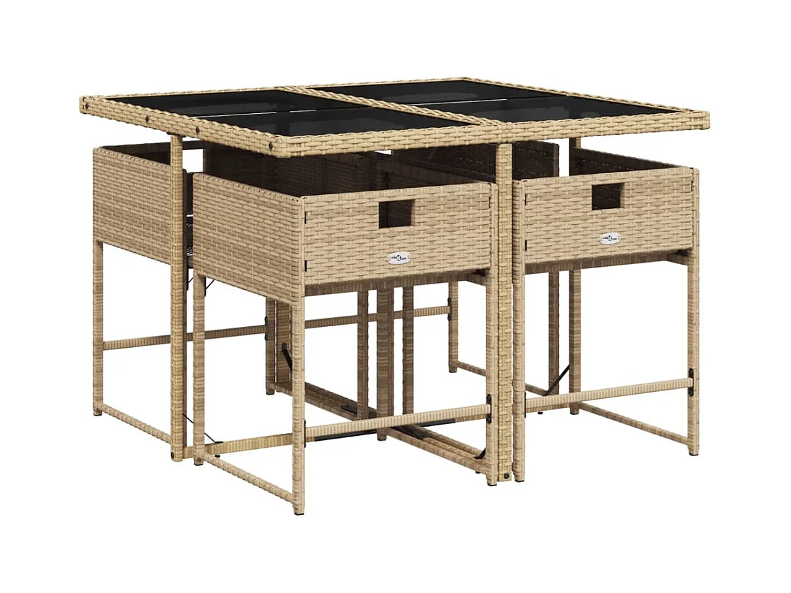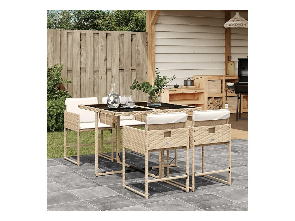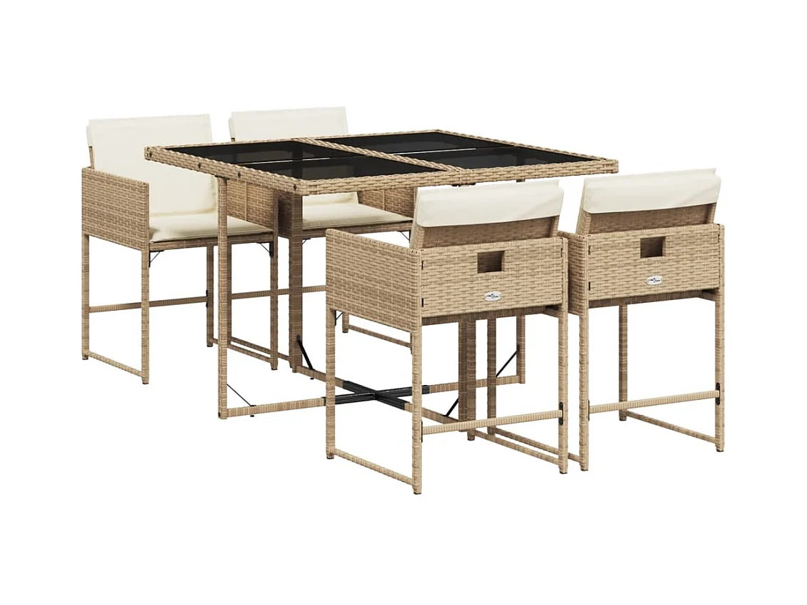5-tlg. Garten-Essgruppe mit Kissen Beige Poly Rattan