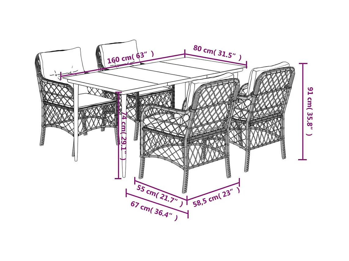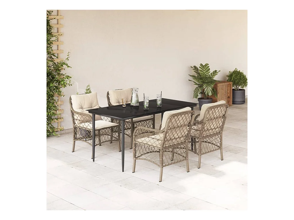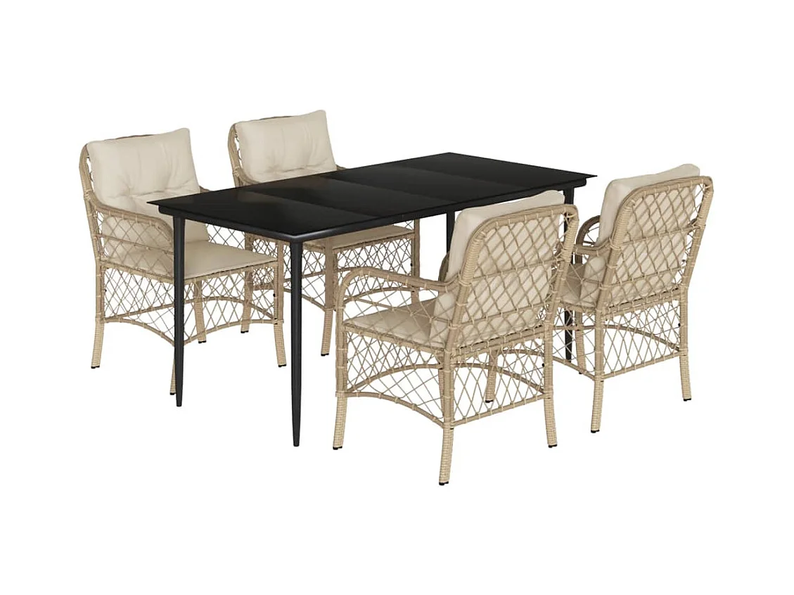 5-tlg. Garten-Essgruppe mit Kissen Beige Poly Rattan
