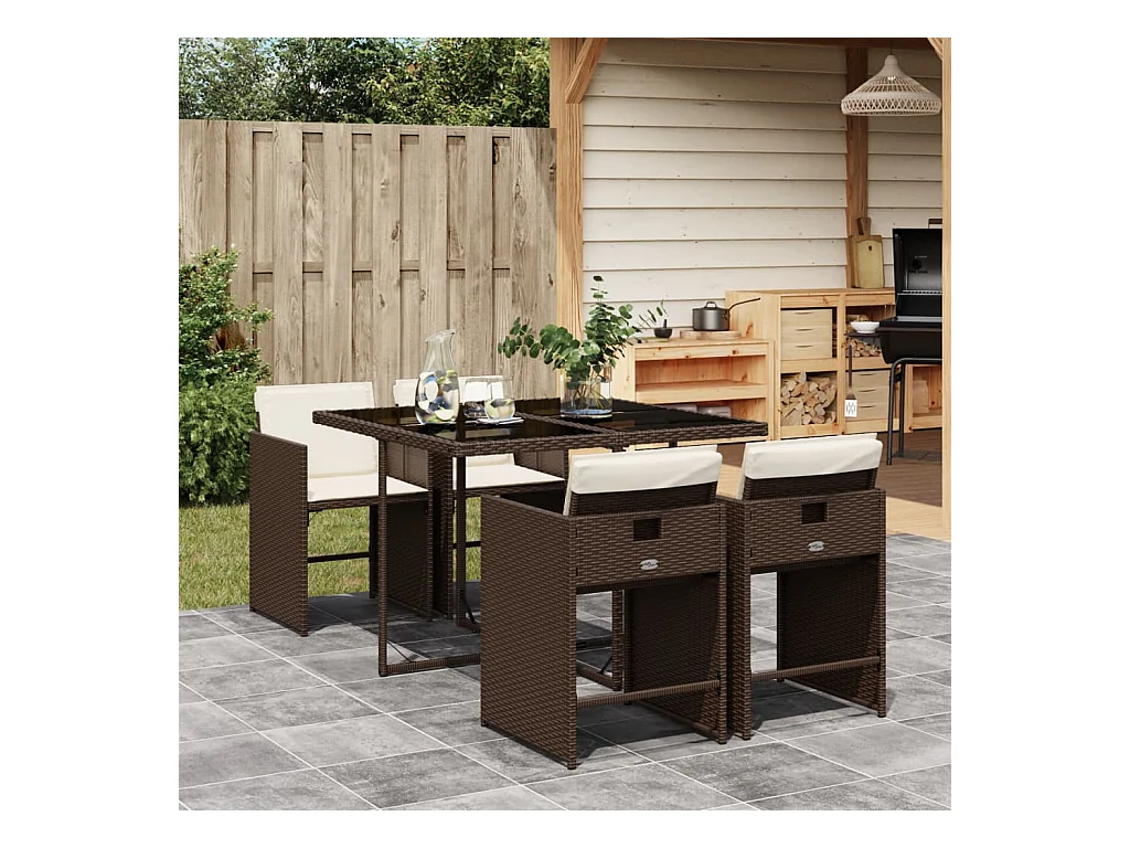 5-tlg. Garten-Essgruppe mit Kissen Braun Poly Rattan