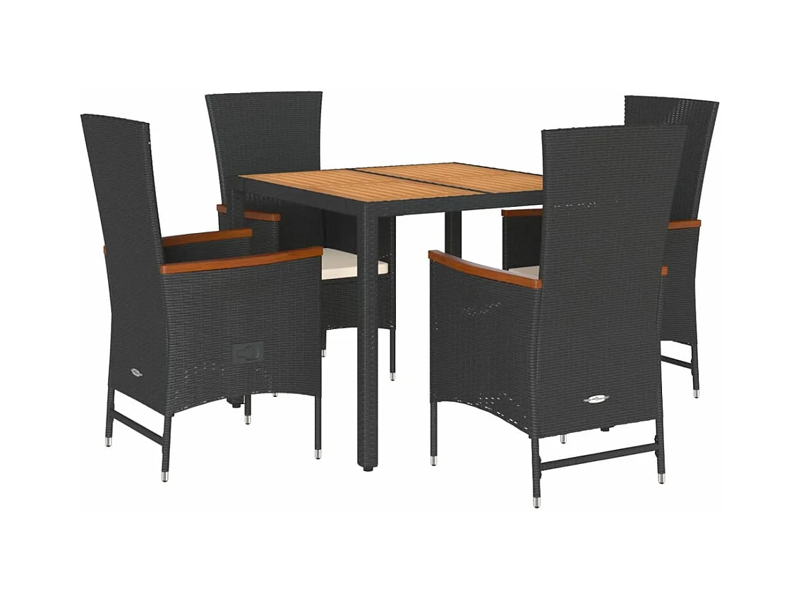5-tlg. Garten-Essgruppe mit Kissen Schwarz Poly Rattan Akazie