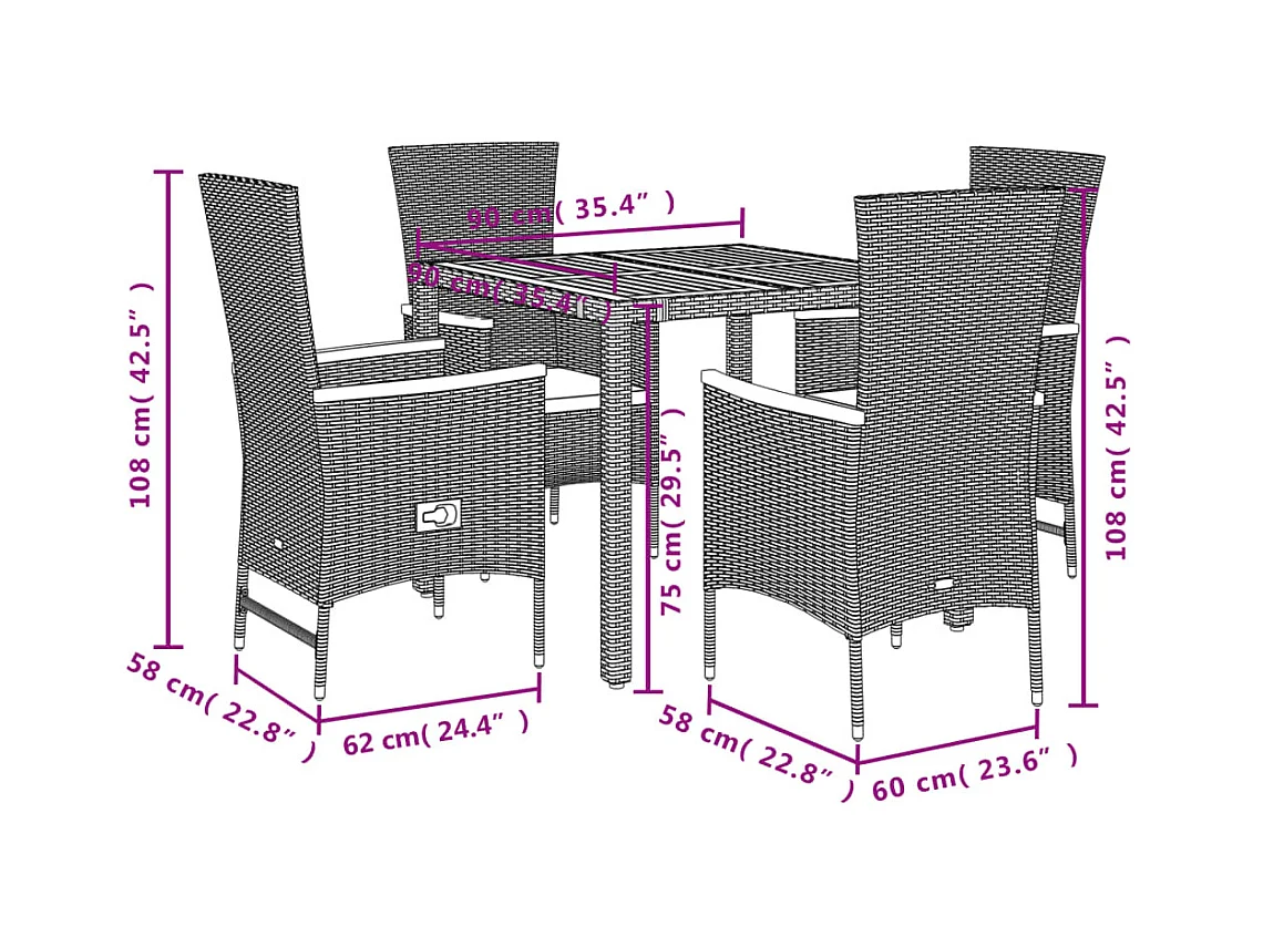 5-tlg. Garten-Essgruppe mit Kissen Schwarz Poly Rattan