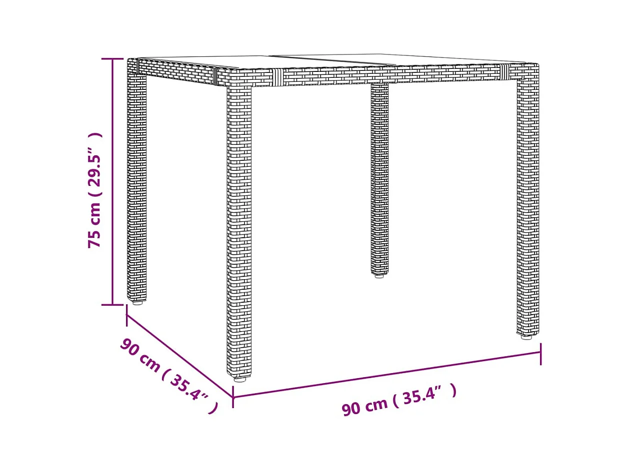 3-tlg. Garten-Essgruppe mit Kissen Schwarz Poly Rattan Glas