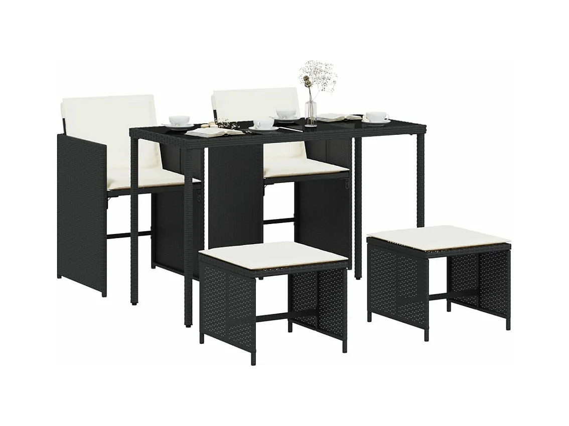 5-tlg. Garten-Essgruppe mit Kissen Schwarz Poly Rattan