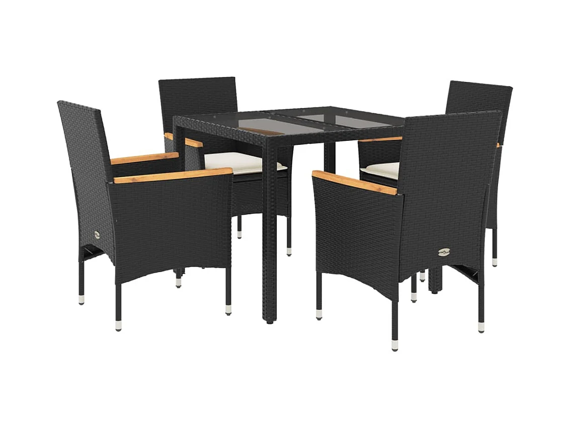 5-tlg. Garten-Essgruppe mit Kissen Schwarz Poly Rattan Akazie