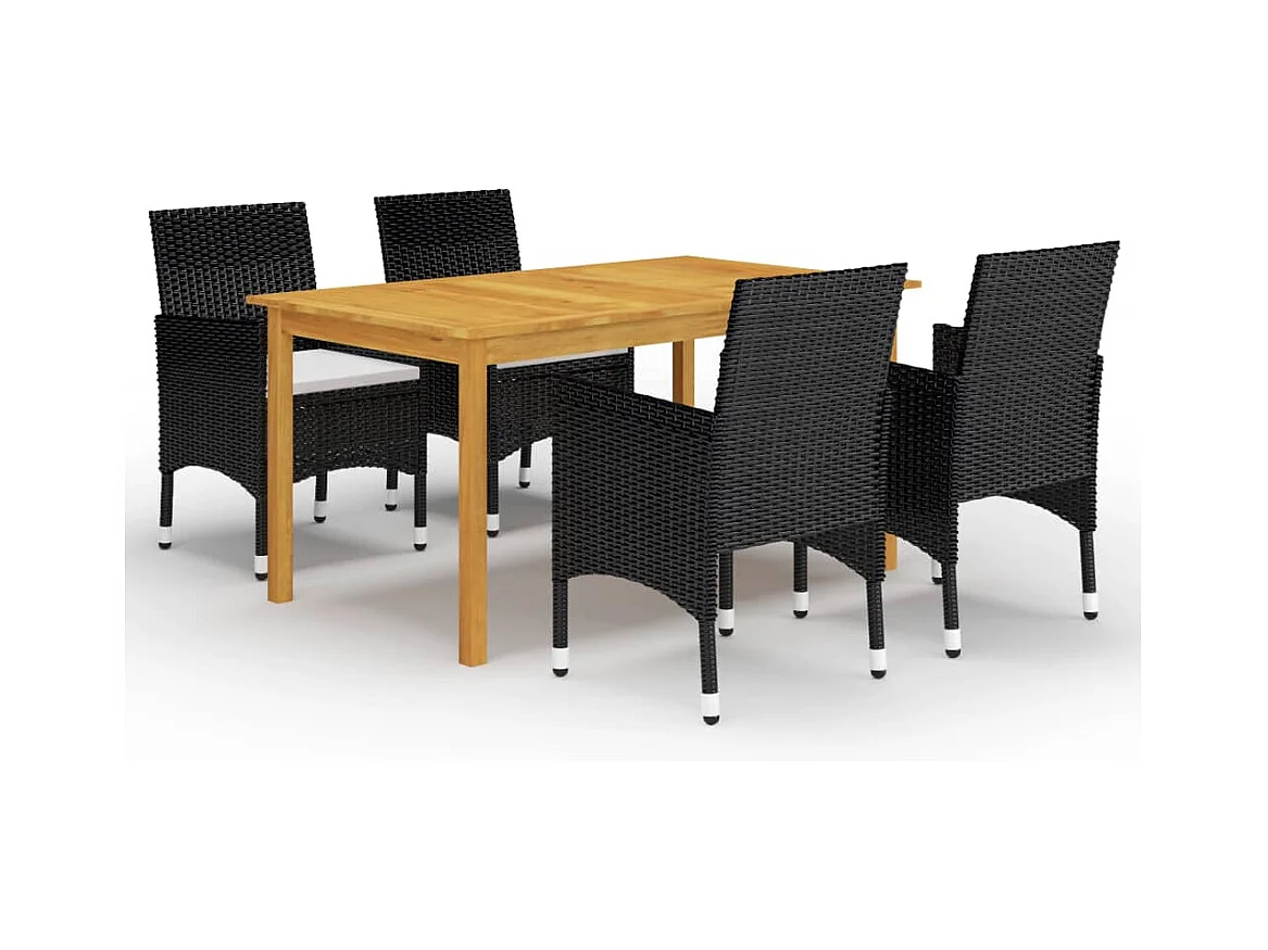 5-tlg. Garten-Essgruppe mit Kissen Schwarz Poly Rattan Akazie