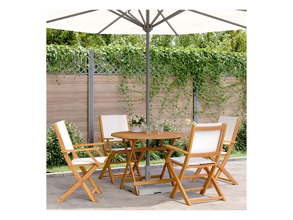 5-tlg. Garten-Essgruppe Stoff und Massivholz Cremeweiß
