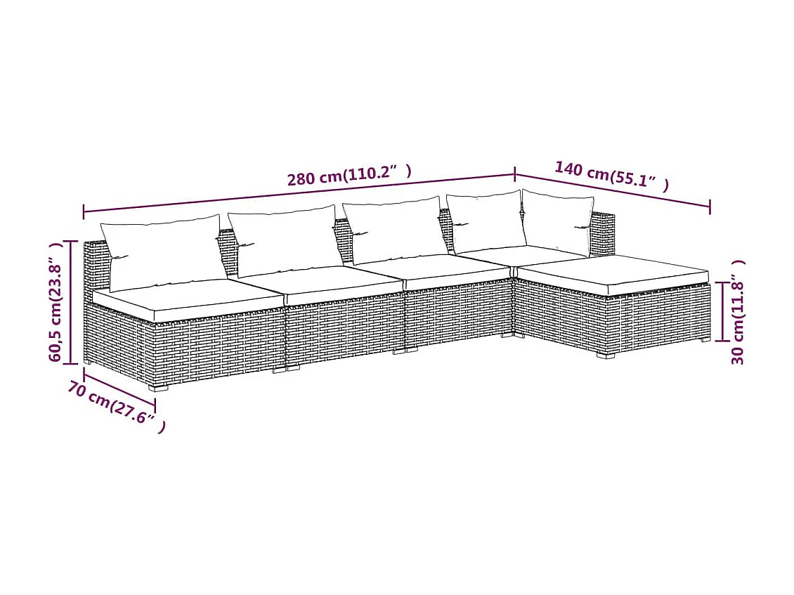 5-tlg. Garten-Lounge-Set mit Kissen Poly Rattan Braun
