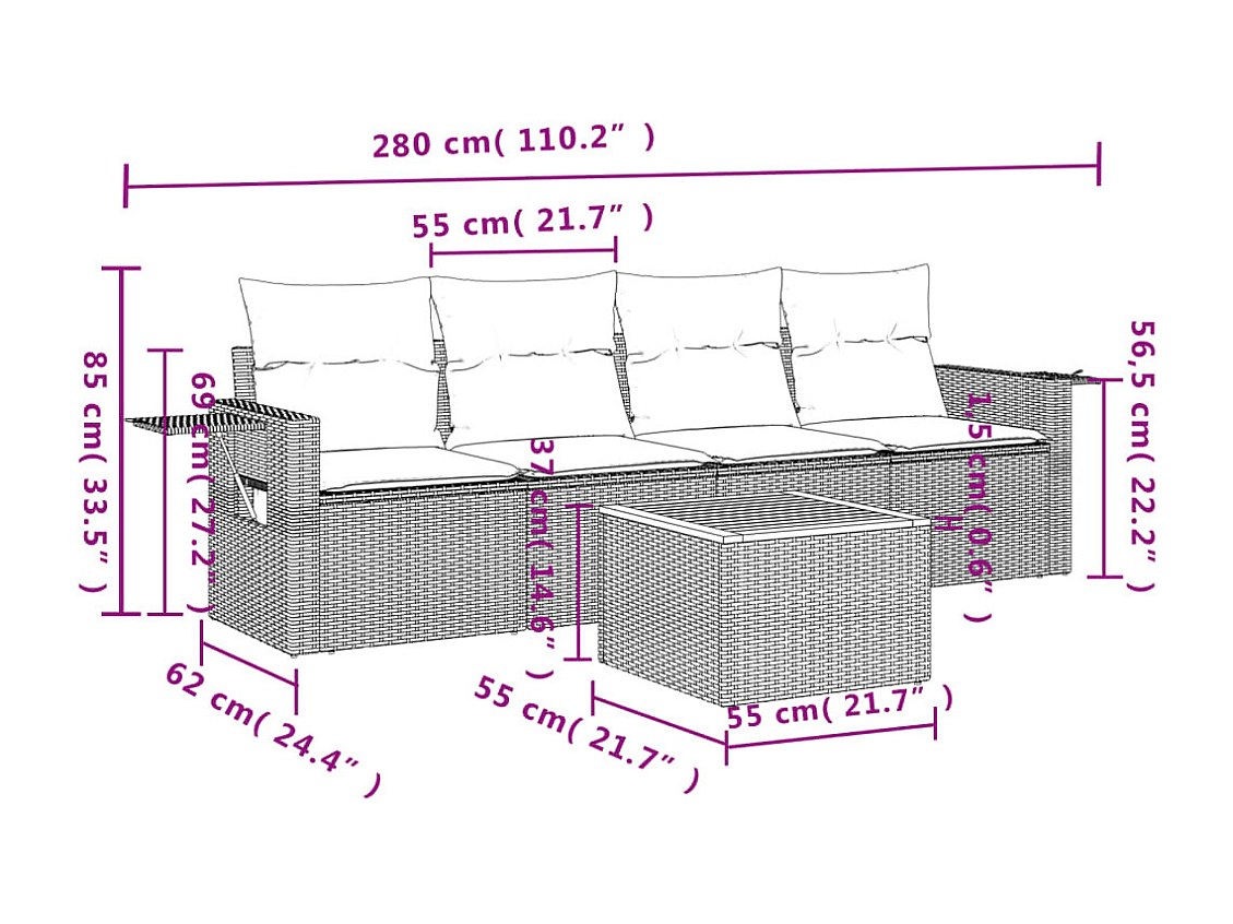 5-tlg. Garten-Essgruppe mit Kissen Poly Rattan Beige