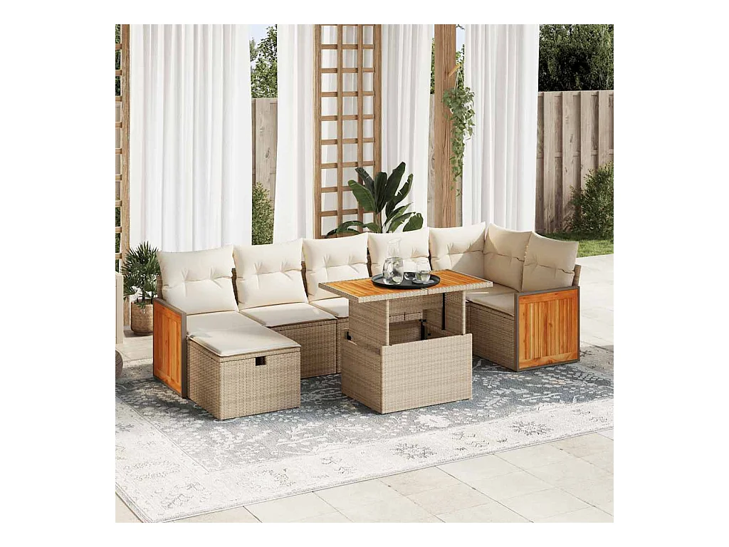 6-tlg. Garten-Sofagarnitur mit Kissen Beige Poly Rattan Akazie