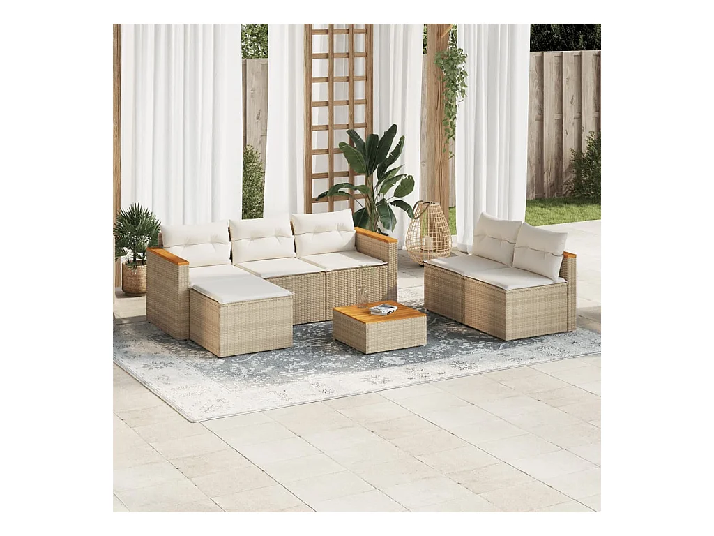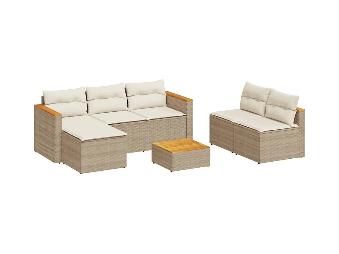 8-tlg. Garten-Sofagarnitur mit Kissen Beige Poly Rattan