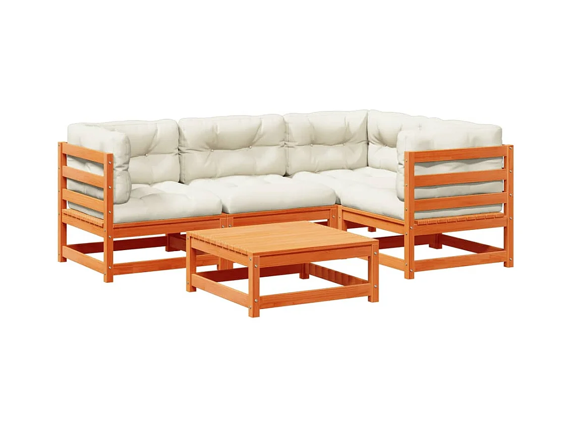 5-tlg. Garten-Sofagarnitur mit Kissen Wachsbraun Kiefernholz