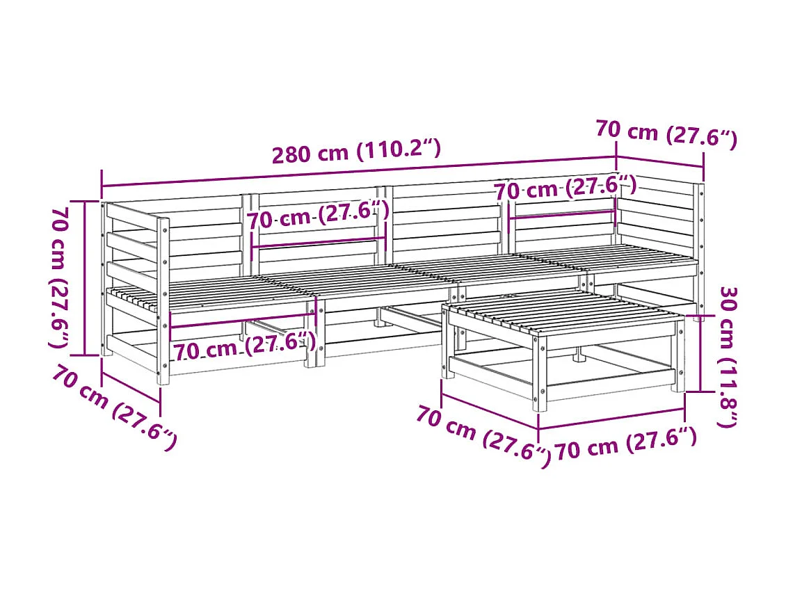 5-tlg. Garten-Sofagarnitur Wachsbraun Massivholz Kiefer