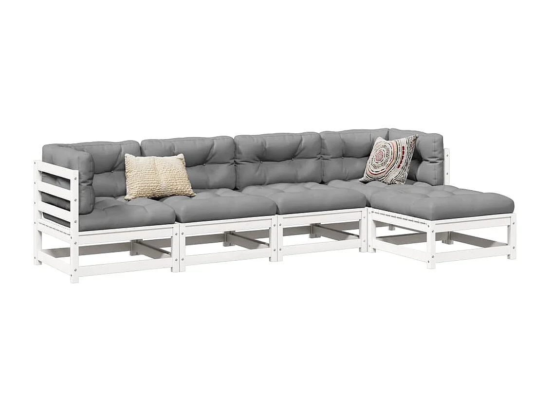 5-tlg. Garten-Sofagarnitur Weiß Massivholz Kiefer