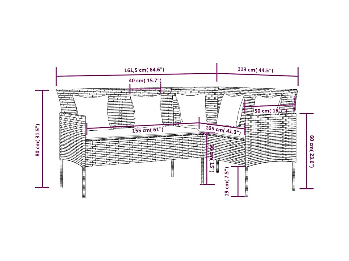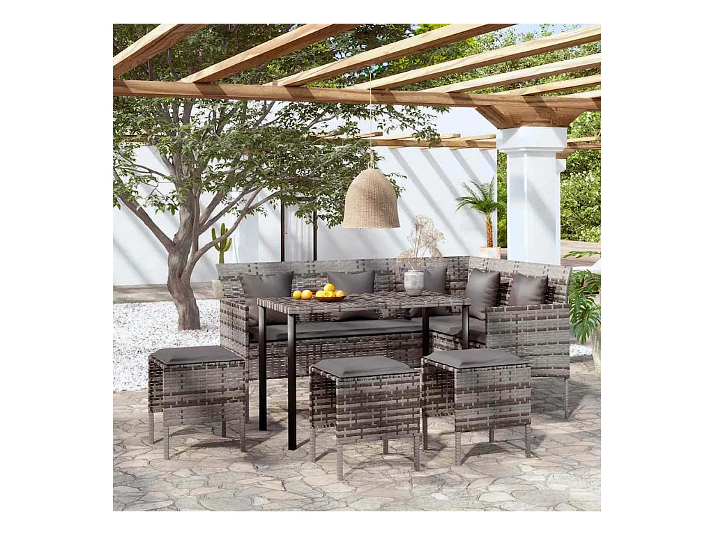 5-tlg. Sofagarnitur in L-Form mit Kissen Poly Rattan Grau