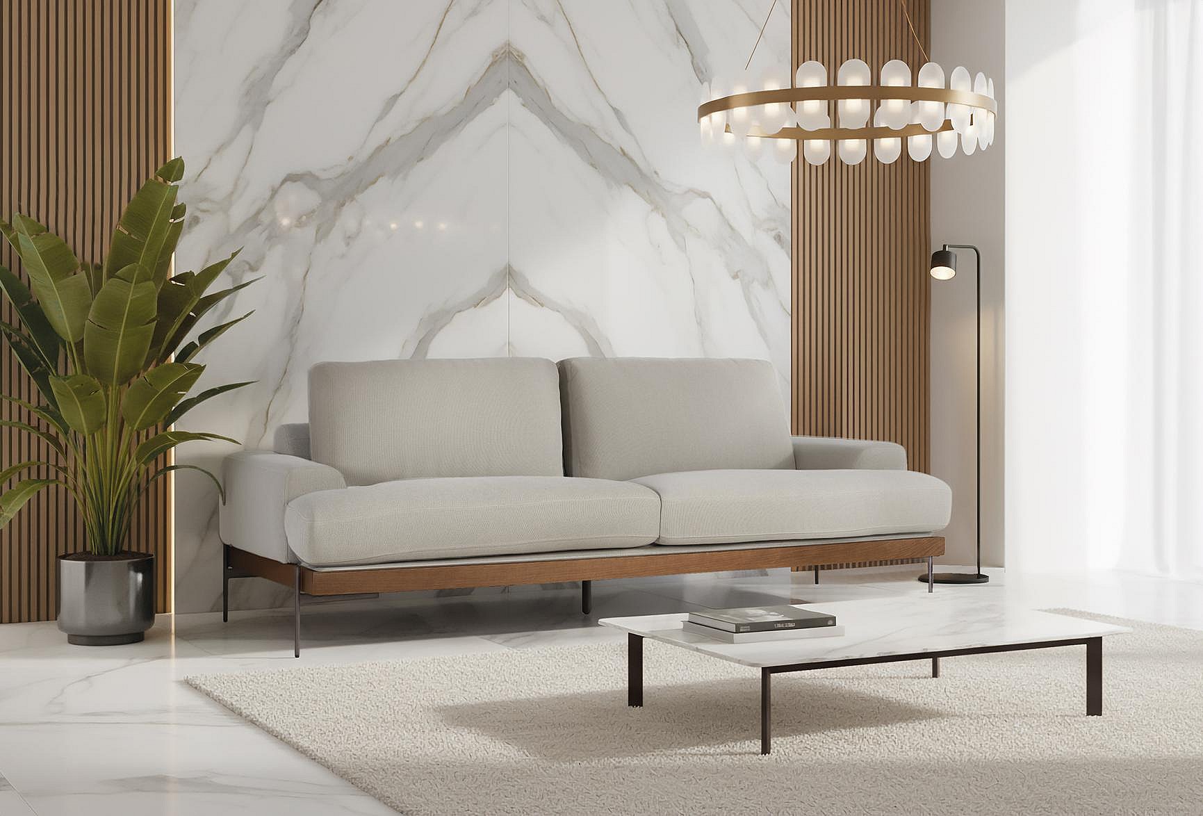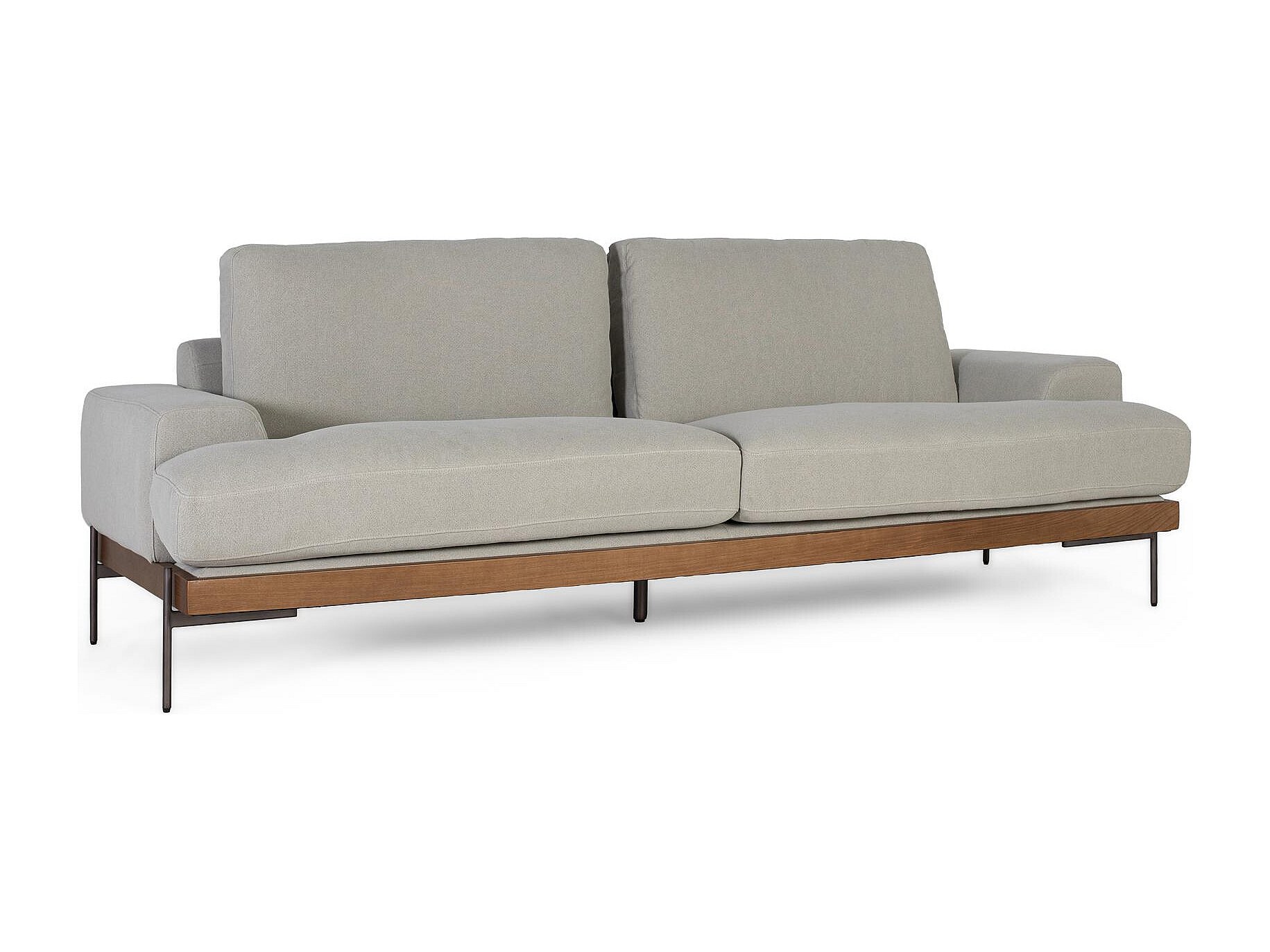 6-Sitzer-Sofa mit grauem Leinenstoff und Metallbeinen
