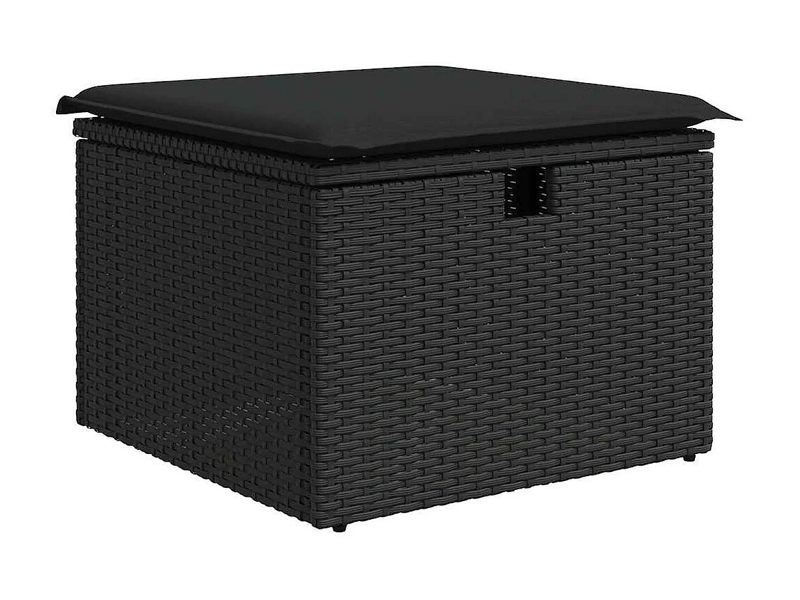 6-teiliges Gartenmöbel-Set mit schwarzen Kissen aus Akazienharzgeflecht