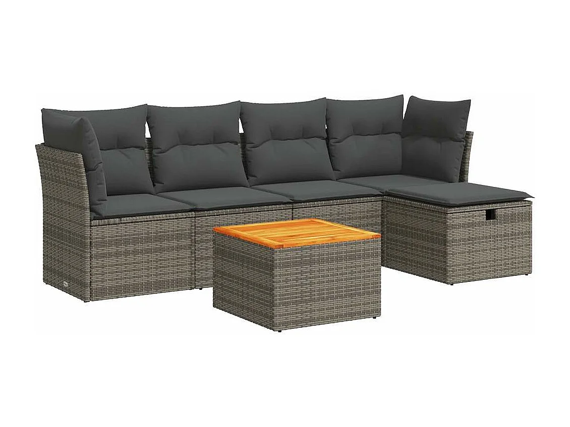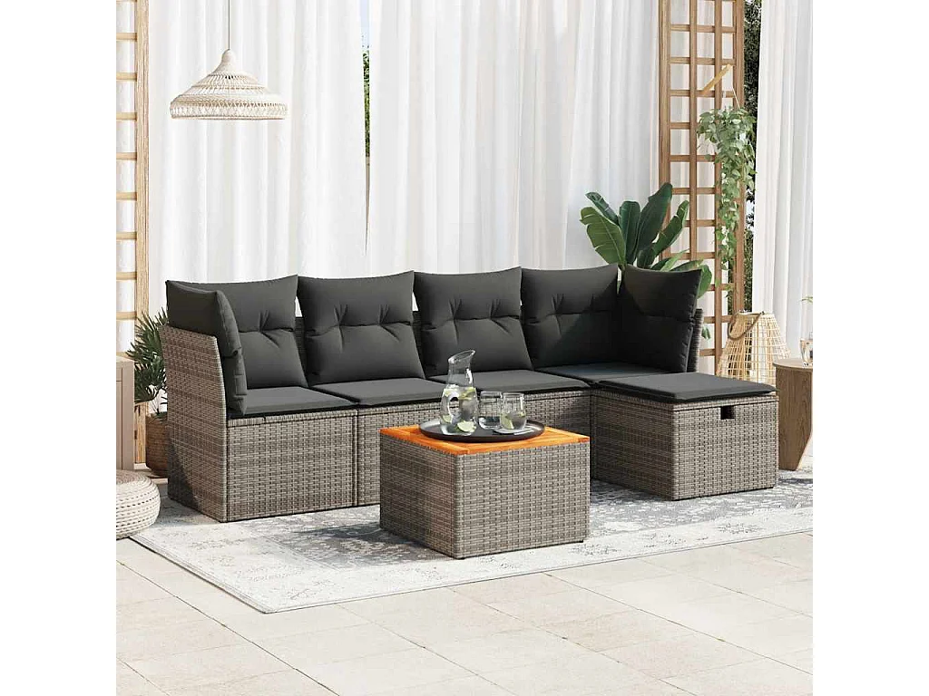 6-teiliges Gartenmöbelset mit grauen Kissen aus gewebtem Harz