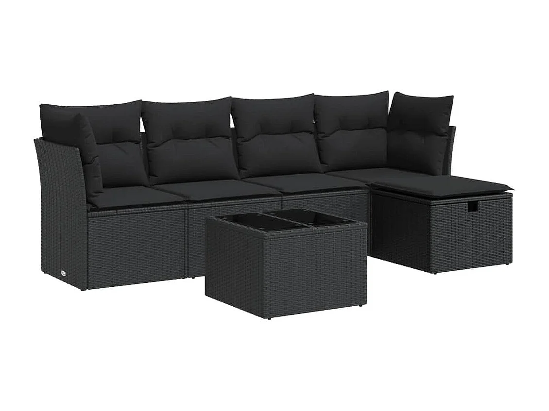 6-teiliges Gartenmöbelset mit schwarzen Kissen aus gewebtem Harz