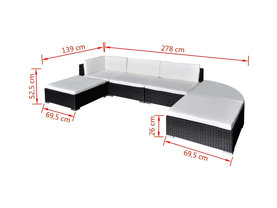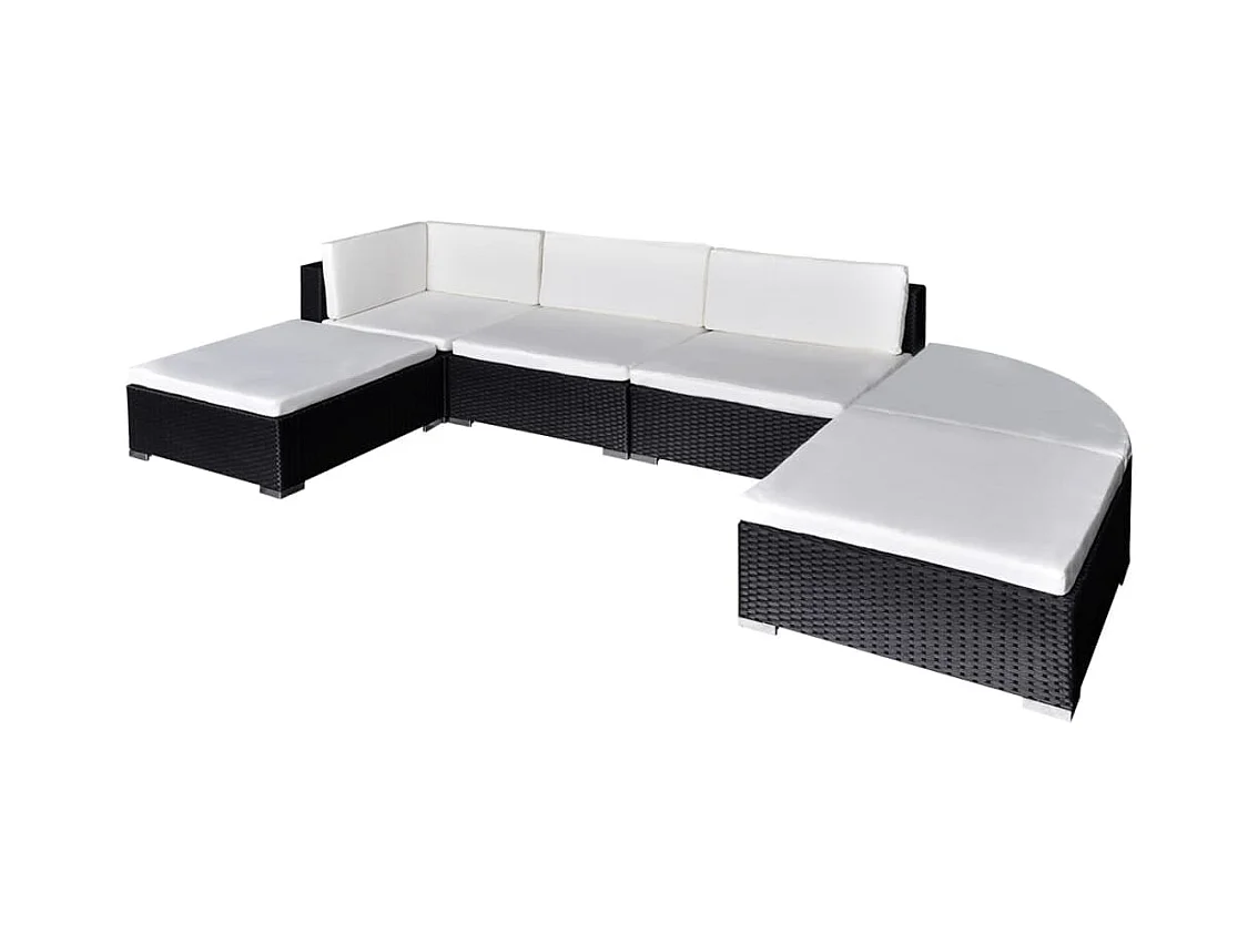 6-tlg. Garten-Lounge-Set mit Kissen Poly Rattan Schwarz