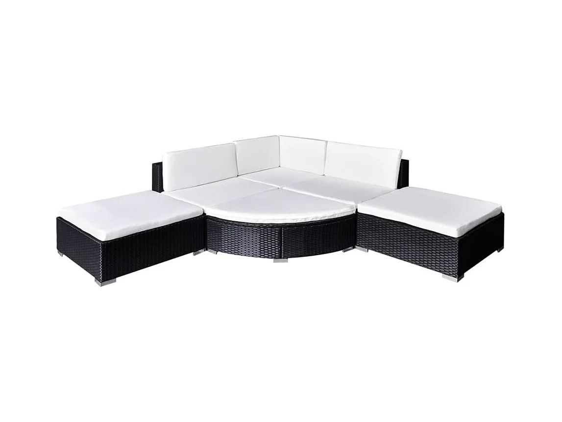 5-tlg. Garten-Lounge-Set mit Kissen Poly Rattan Schwarz