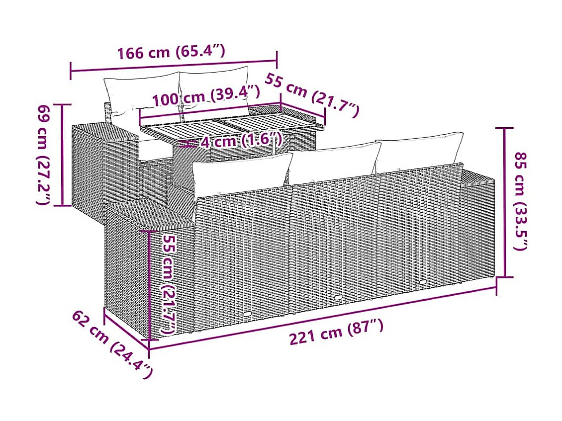6-tlg. Garten-Sofagarnitur mit Kissen Beige Poly Rattan