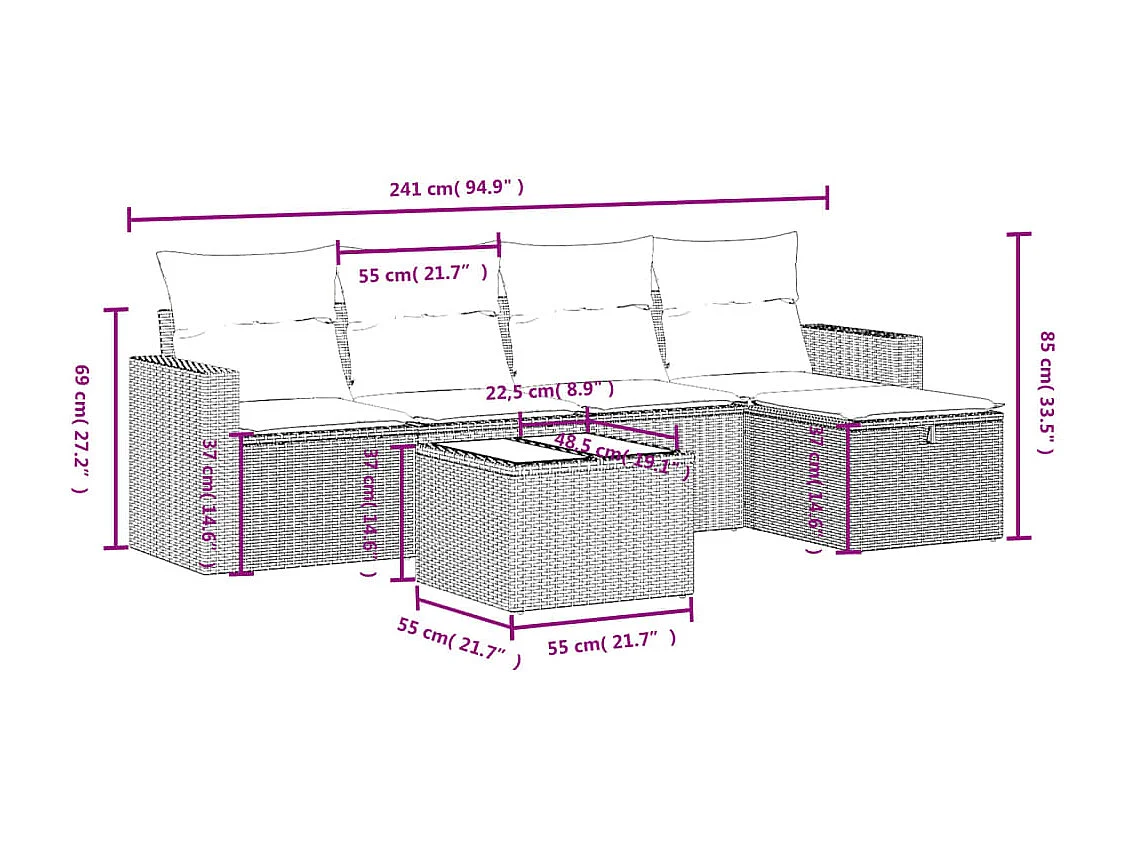 6-tlg. Garten-Sofagarnitur mit Kissen Braun Poly Rattan