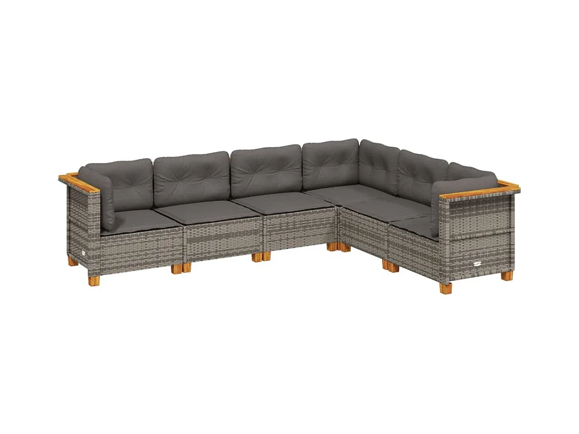 6-tlg. Garten-Sofagarnitur mit Kissen Grau Poly Rattan