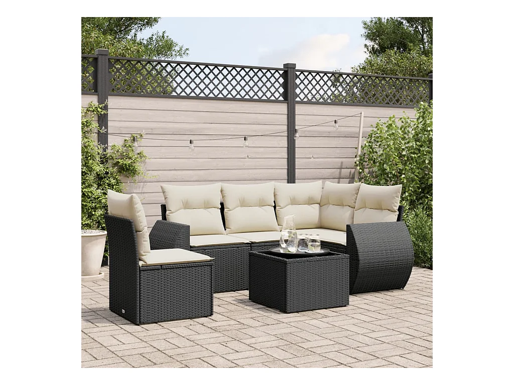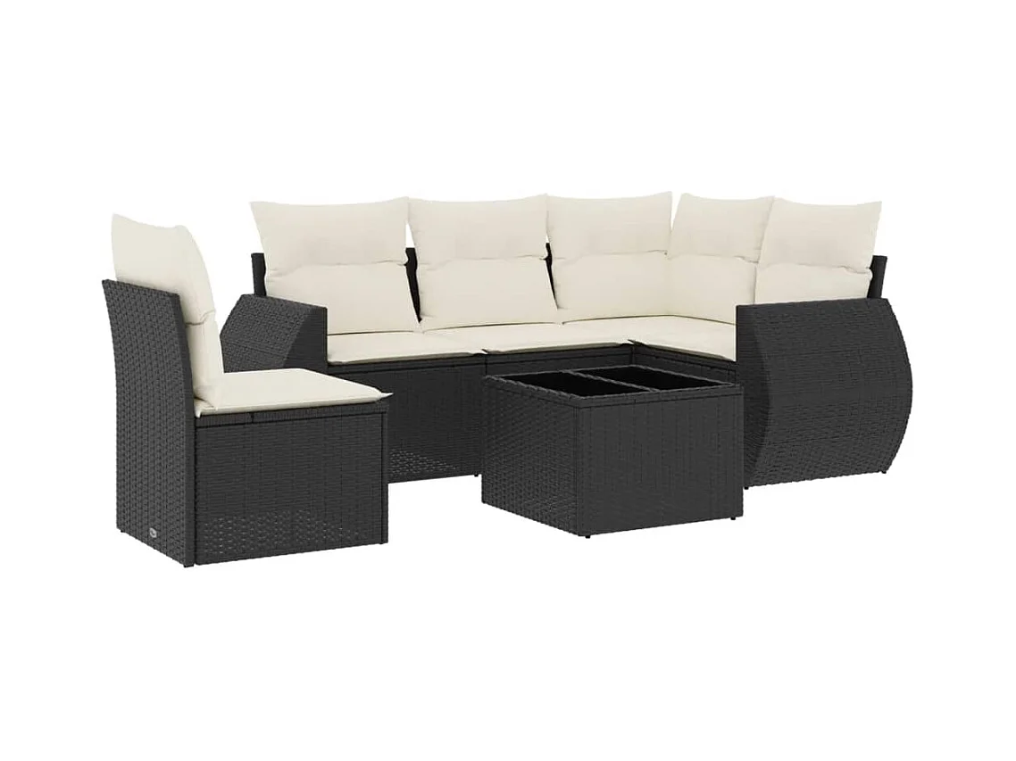 6-tlg. Garten-Sofagarnitur mit Kissen Schwarz Poly Rattan
