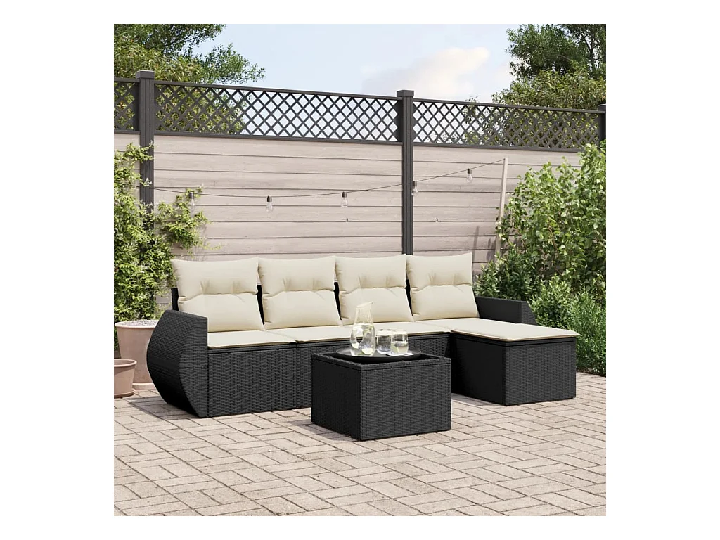 6-tlg. Garten-Sofagarnitur mit Kissen Schwarz Poly Rattan