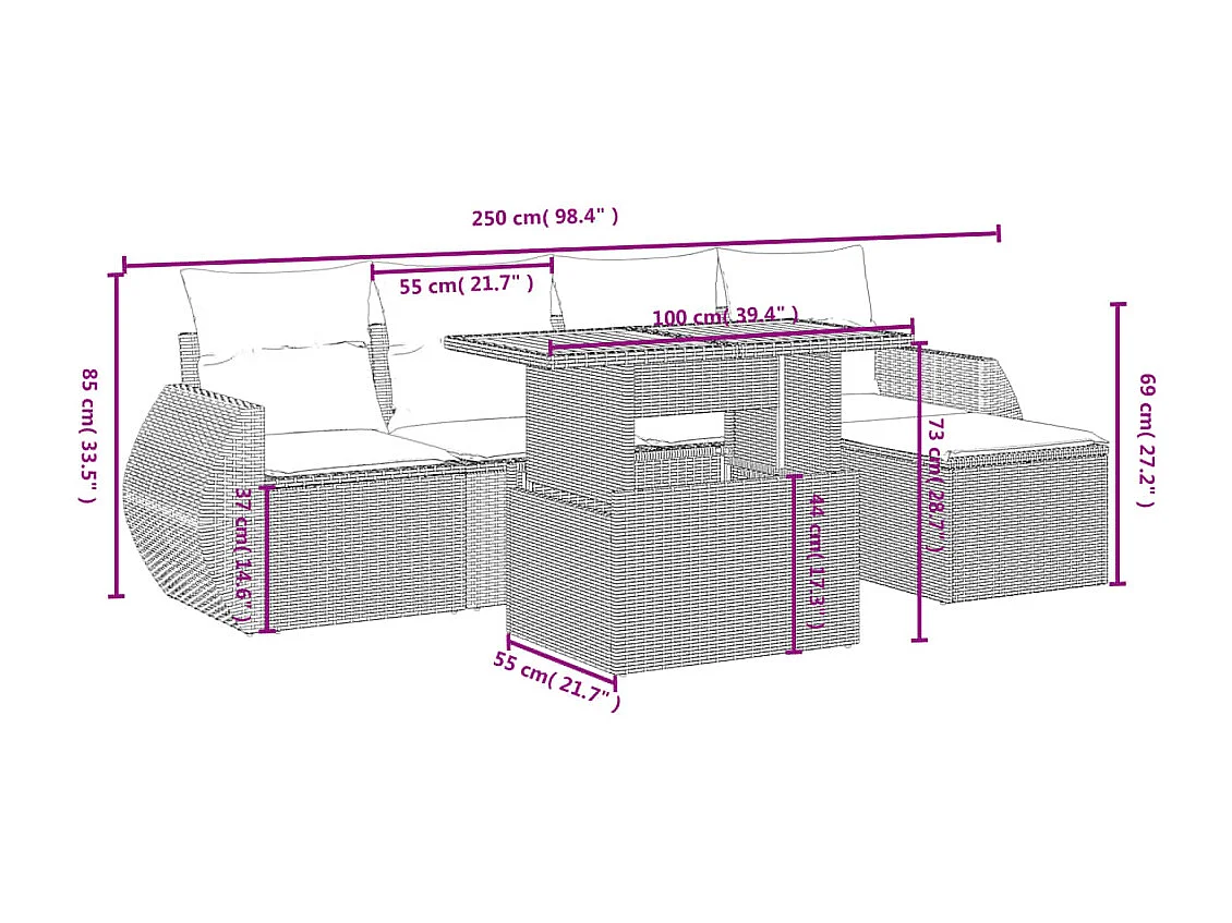 6-tlg. Garten-Sofagarnitur mit Kissen Schwarz Poly Rattan