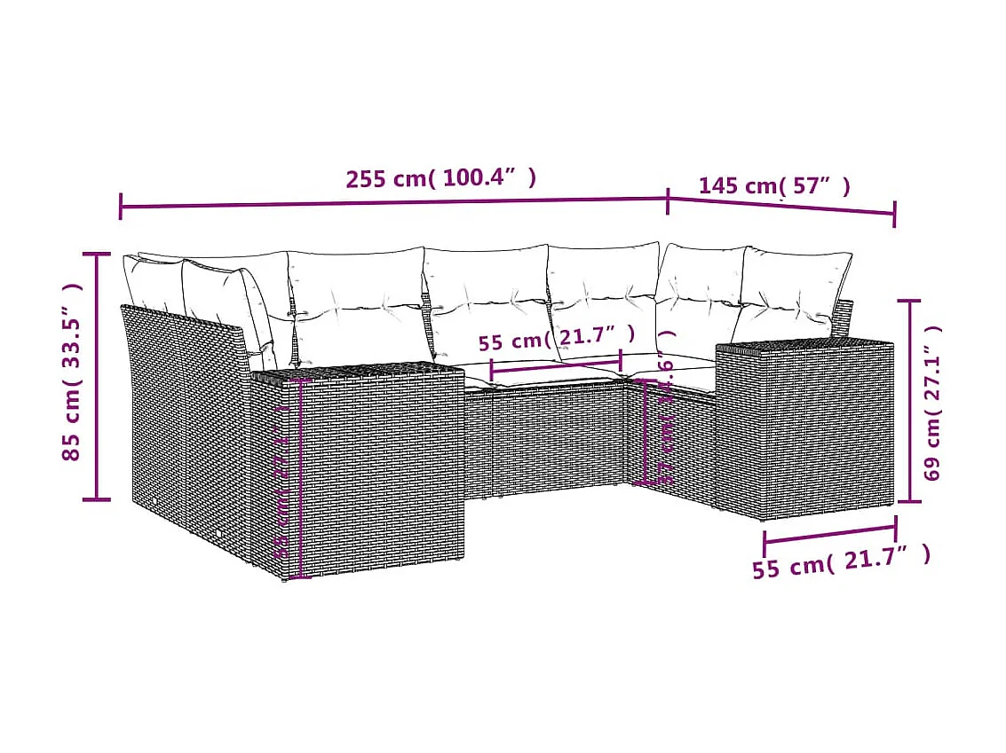6-tlg. Garten-Sofagarnitur mit Kissen Schwarz Poly Rattan