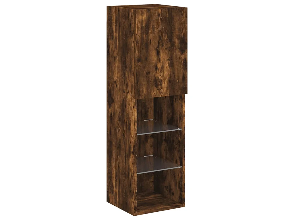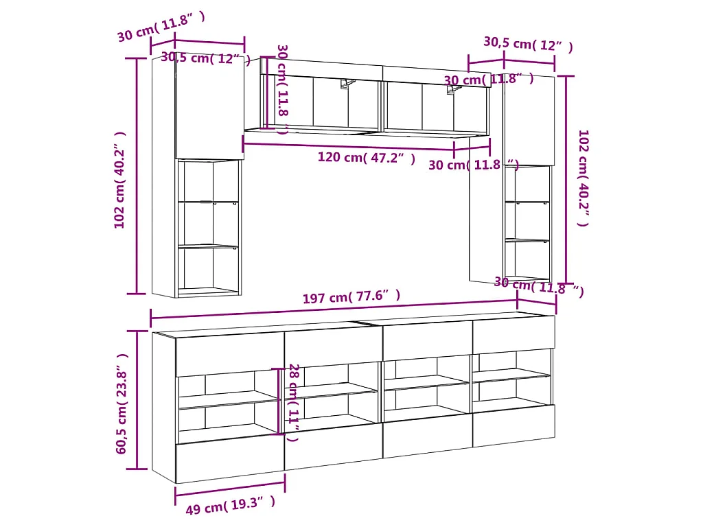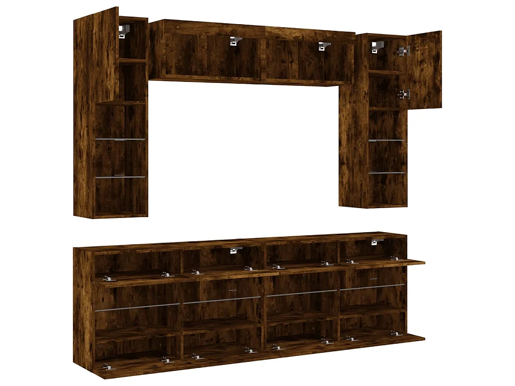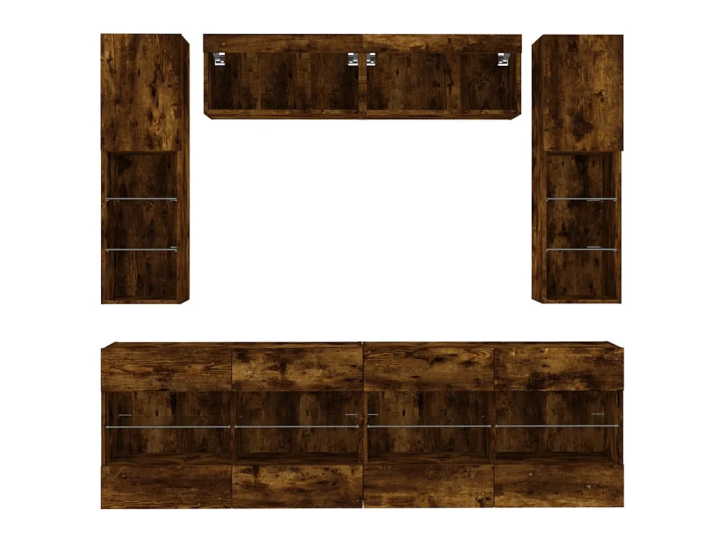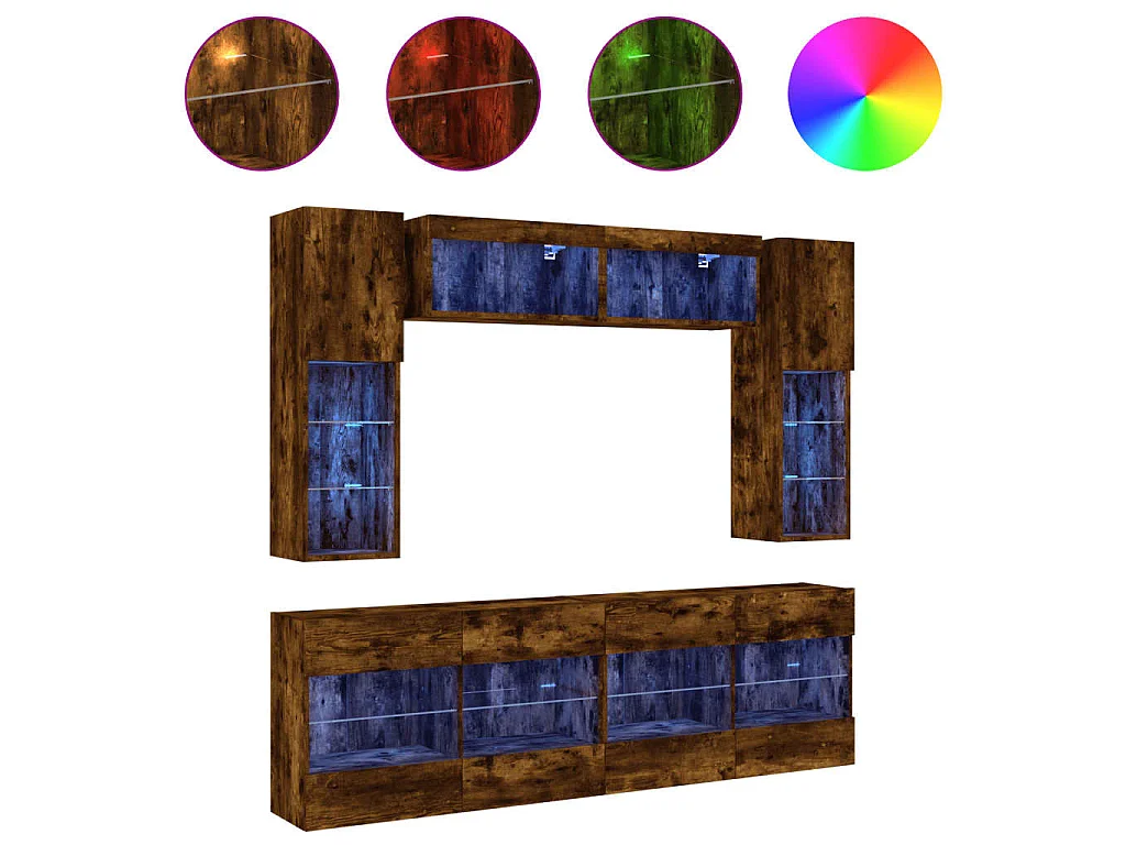6-tlg. TV-Wohnwand mit LED-Leuchten Räuchereiche