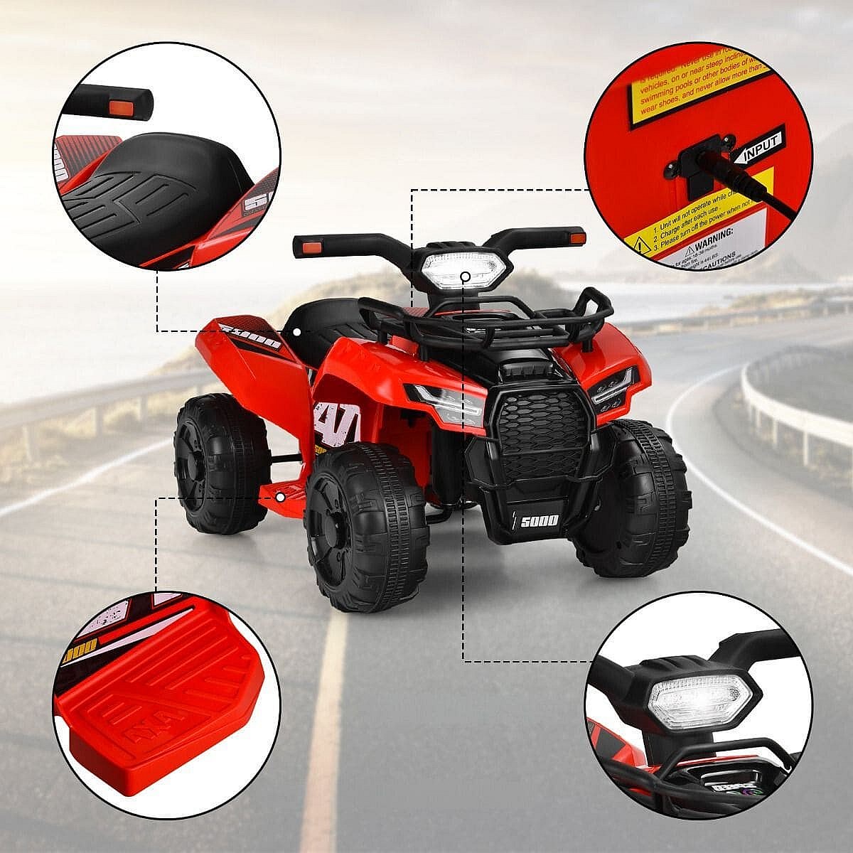 6V Elektro Kinderquad mit Stauraum & Musik & Hupe & LED Scheinwerfer Mini Elektroquad Rot