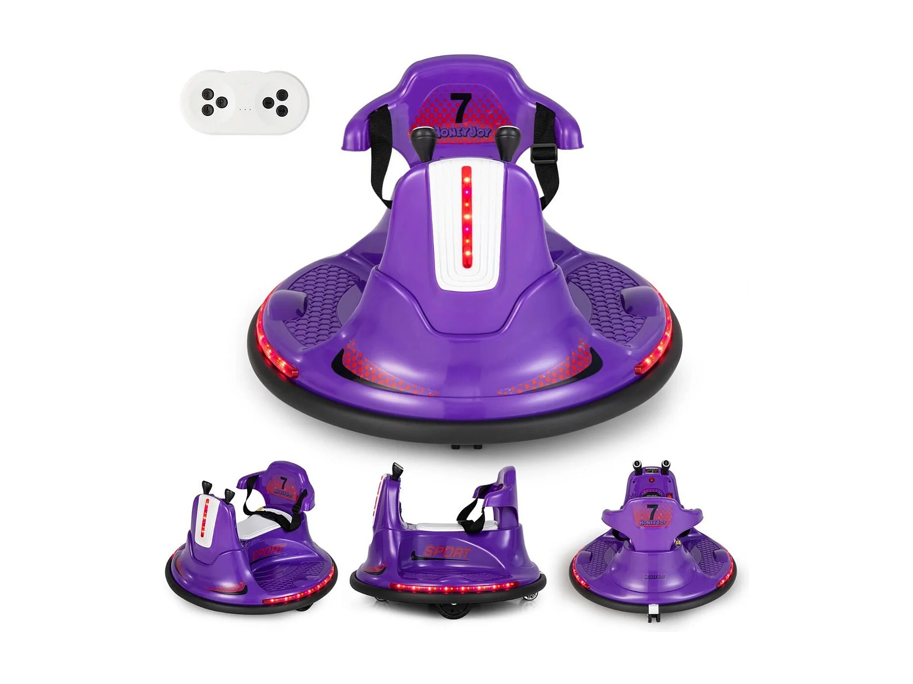 6V Kinder Autoscooter 360 Grad Drehung mit Musik & bunten LED Lichtern Lila