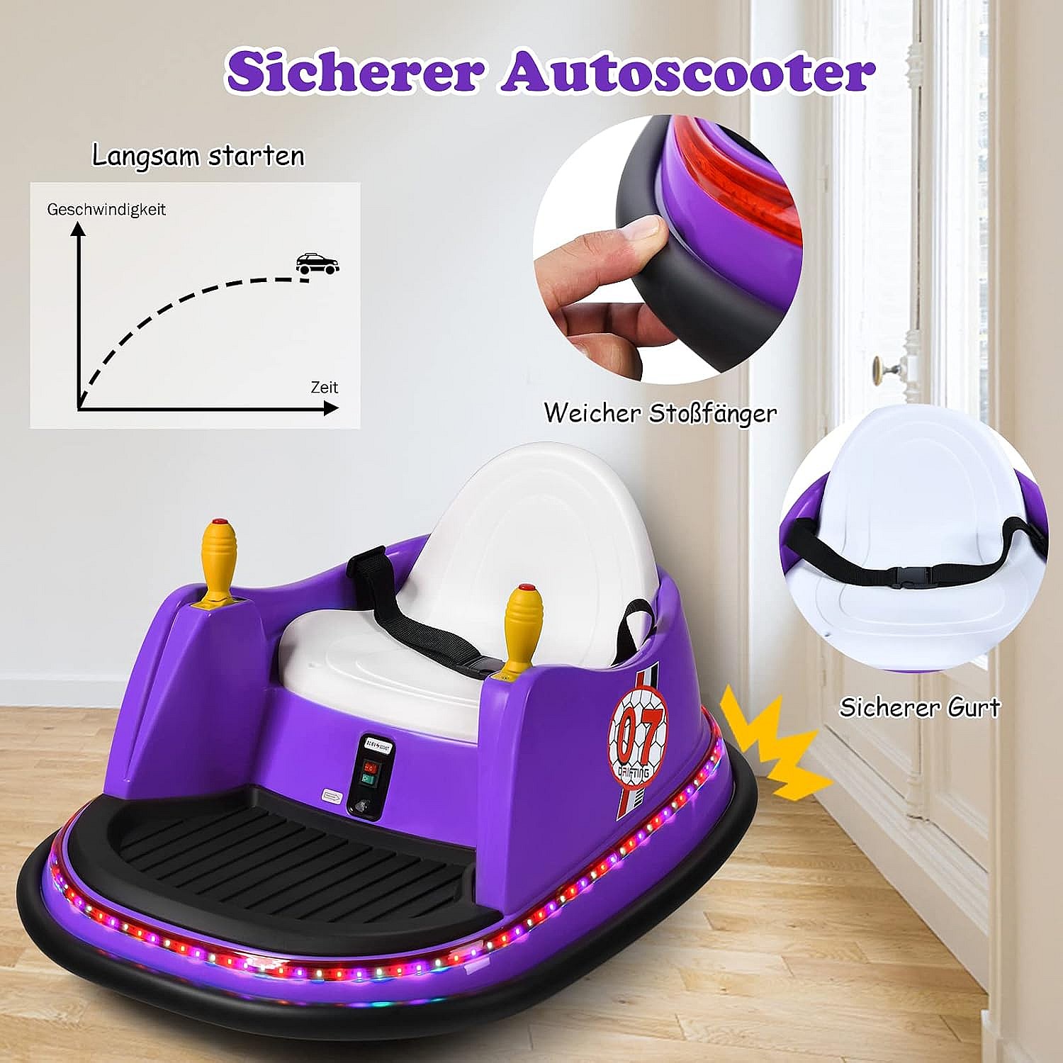 6V Kinder Autoscooter Elektro Fahrzeuge mit Lichtern und Musik 57 x 75 x 42 cm Lila