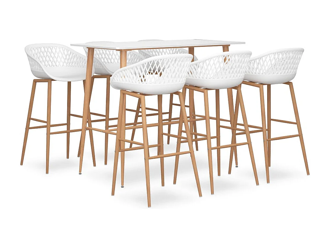 3-teiliges Bar-Set, weiß, massives Kiefernholz