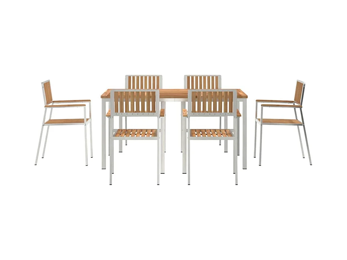 7-teiliges Garten-Ess-Set in Grau und Braun